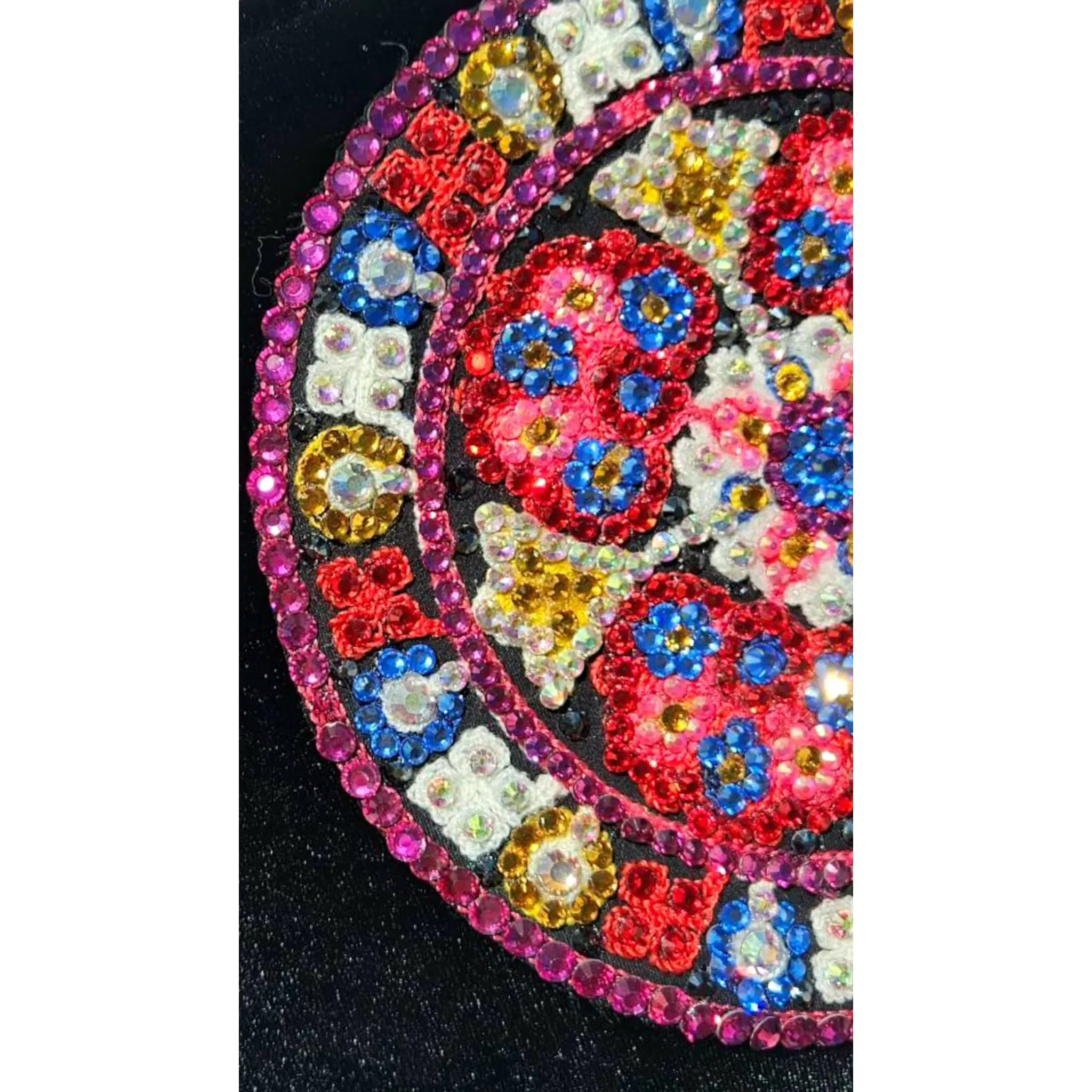 Brighten your accessory collection with our Orange Khayamiya Rhinestones Clutch, a stunning blend of traditional artistry and contemporary flair. This eye-catching piece is perfect for those looking to make a bold statement at any event.