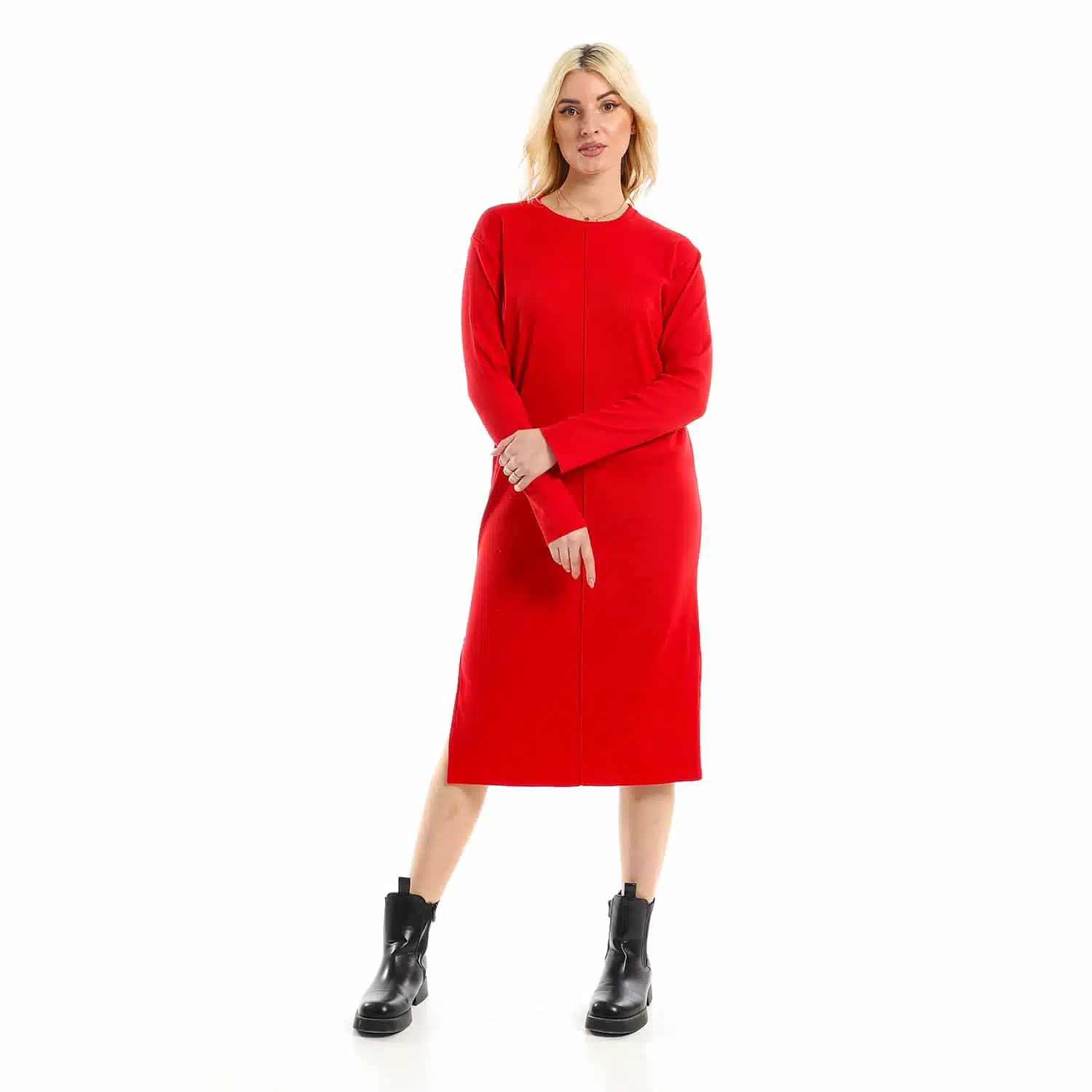 - Red rib dress