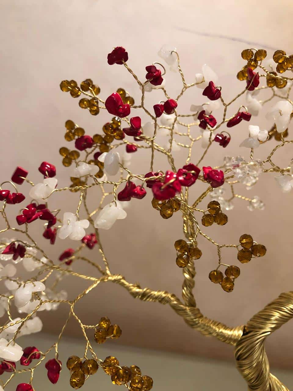 stones with crystals copper wire tree