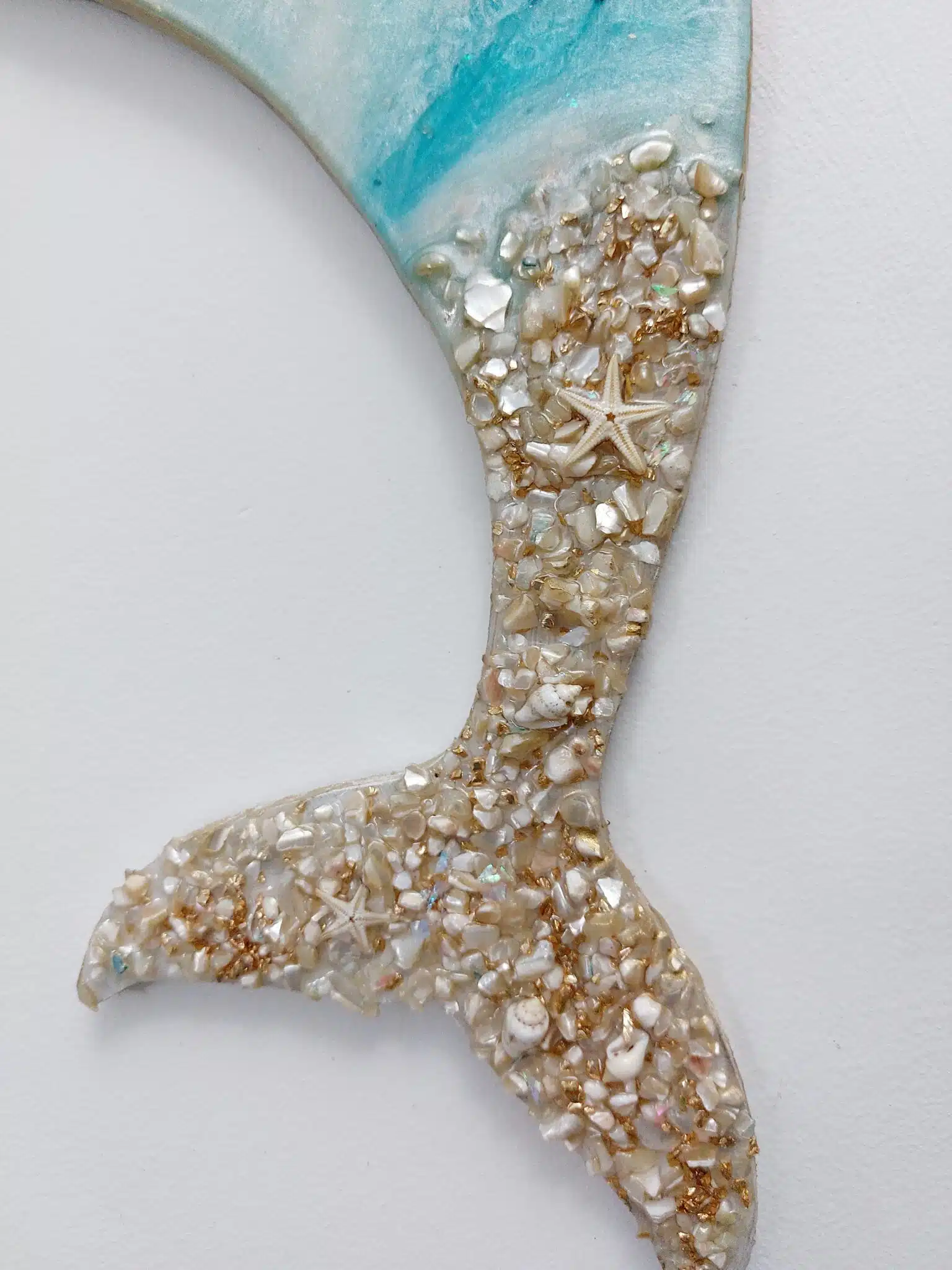 Hanging wall art from resin, wood, and natural seashells …