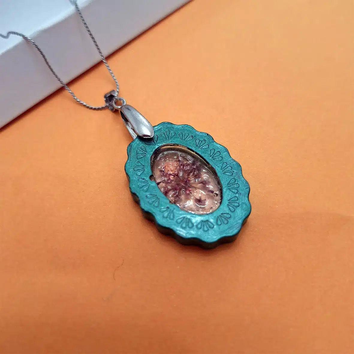 resin necklace with real dried flowers