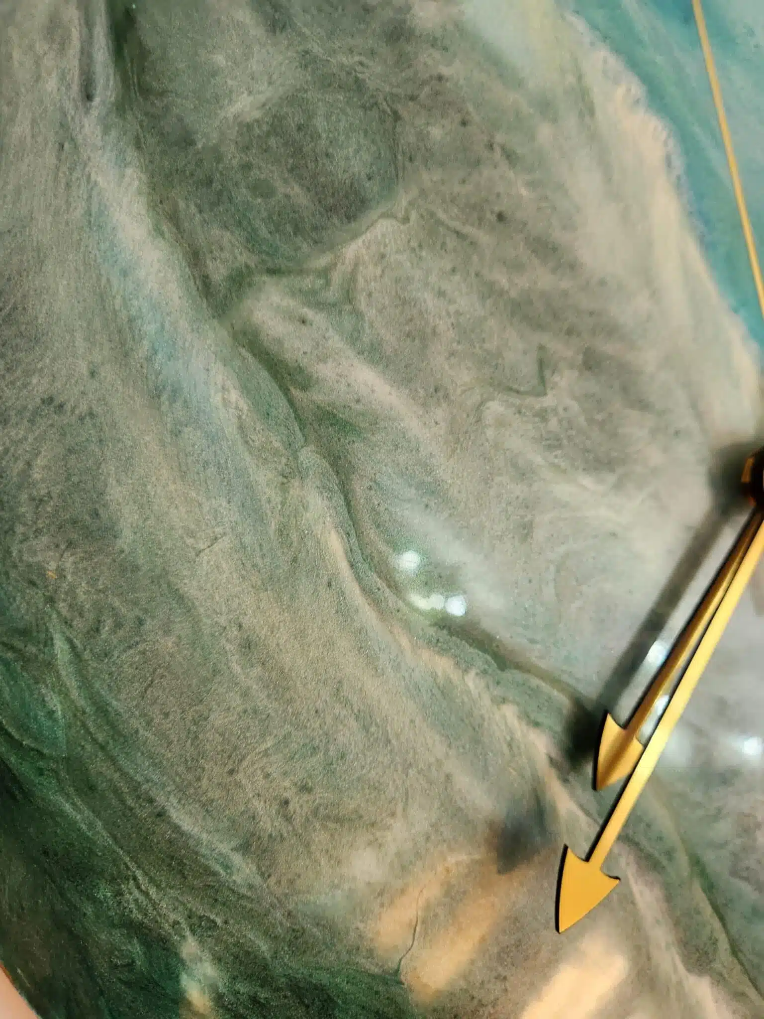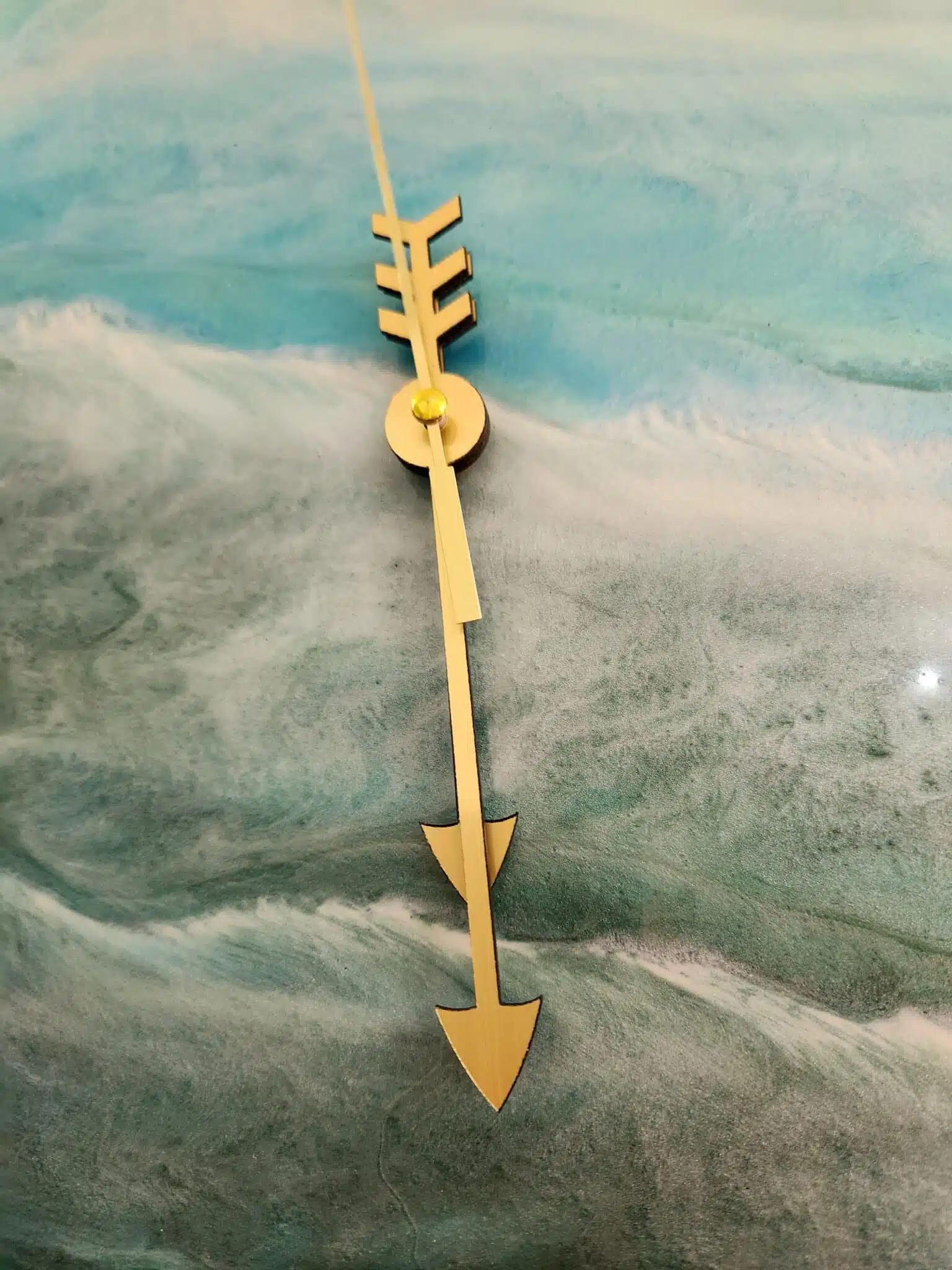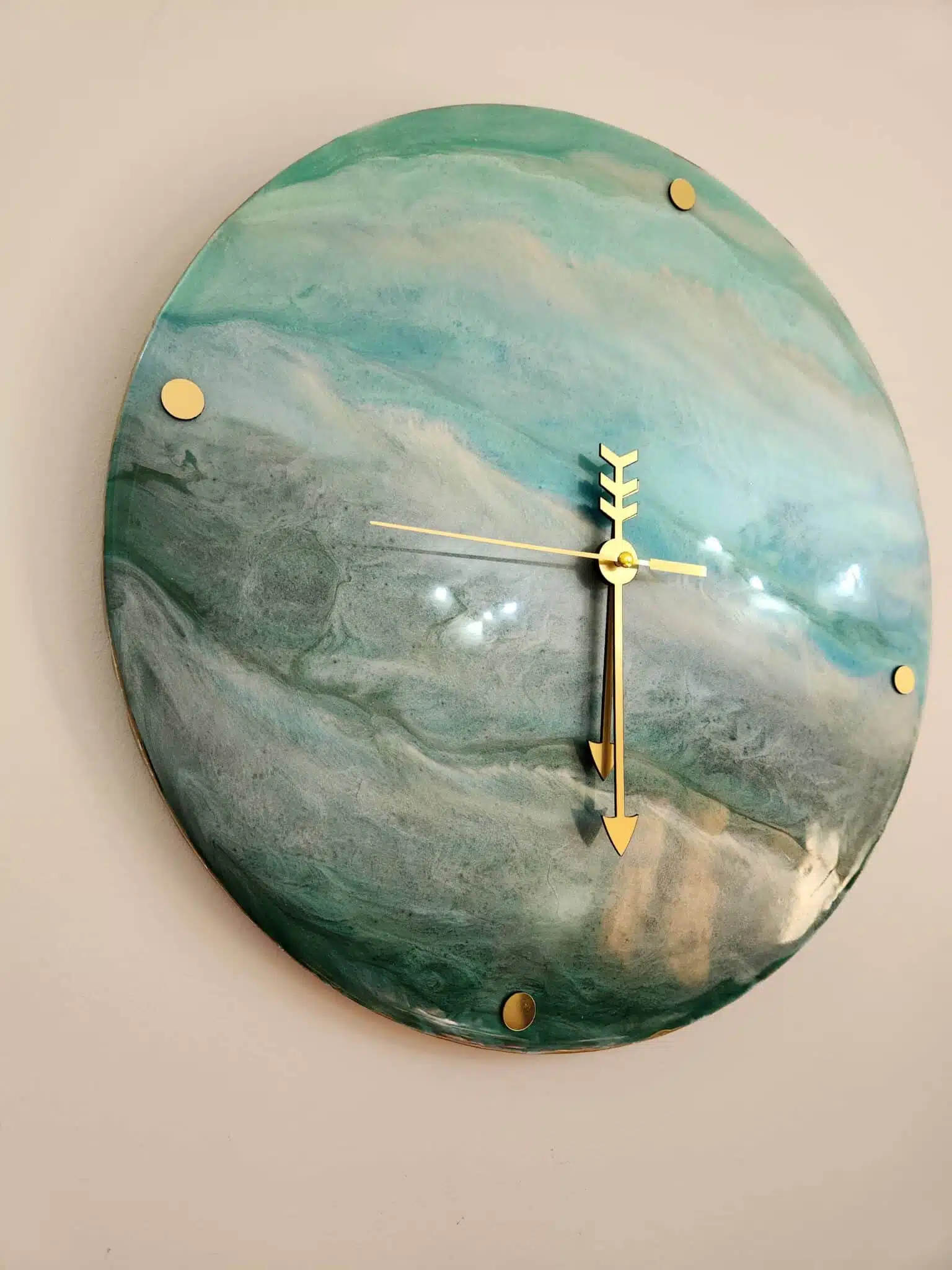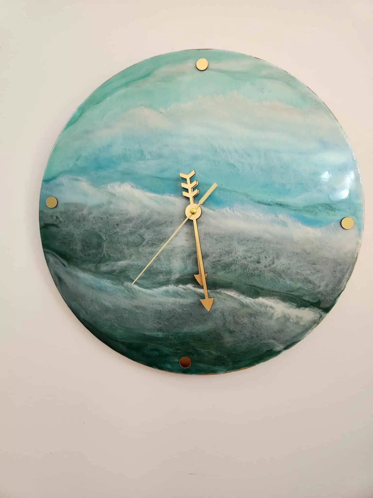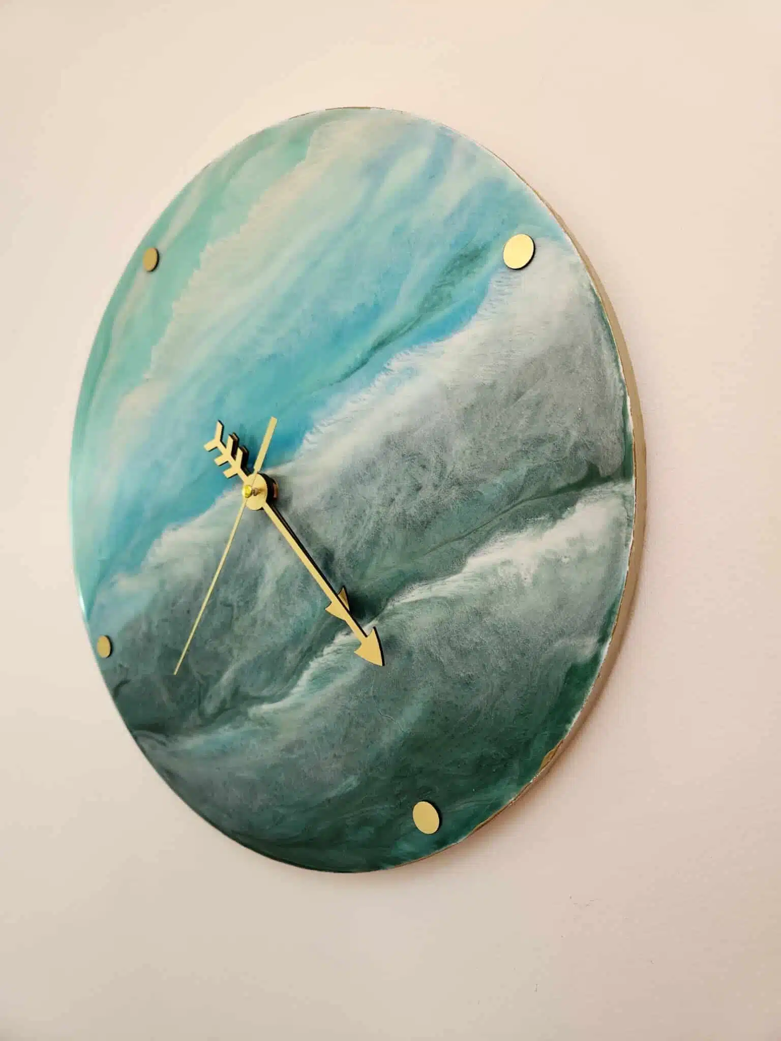 Unique resin seascape wall oclock on wood board .. around 35 cm