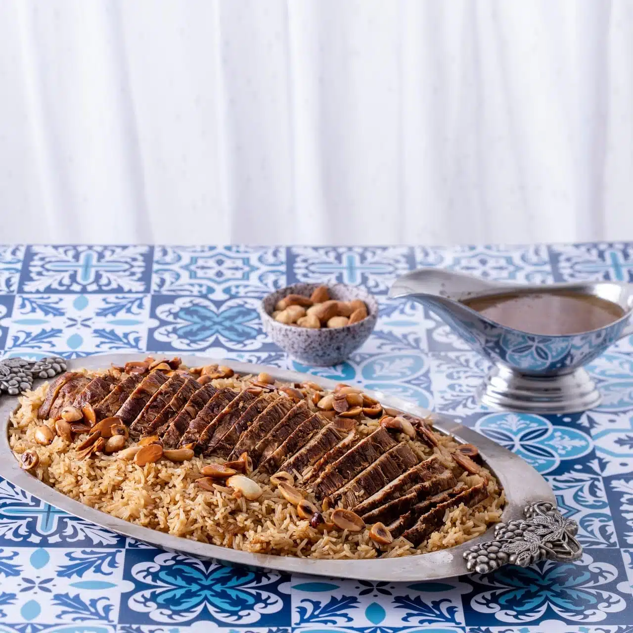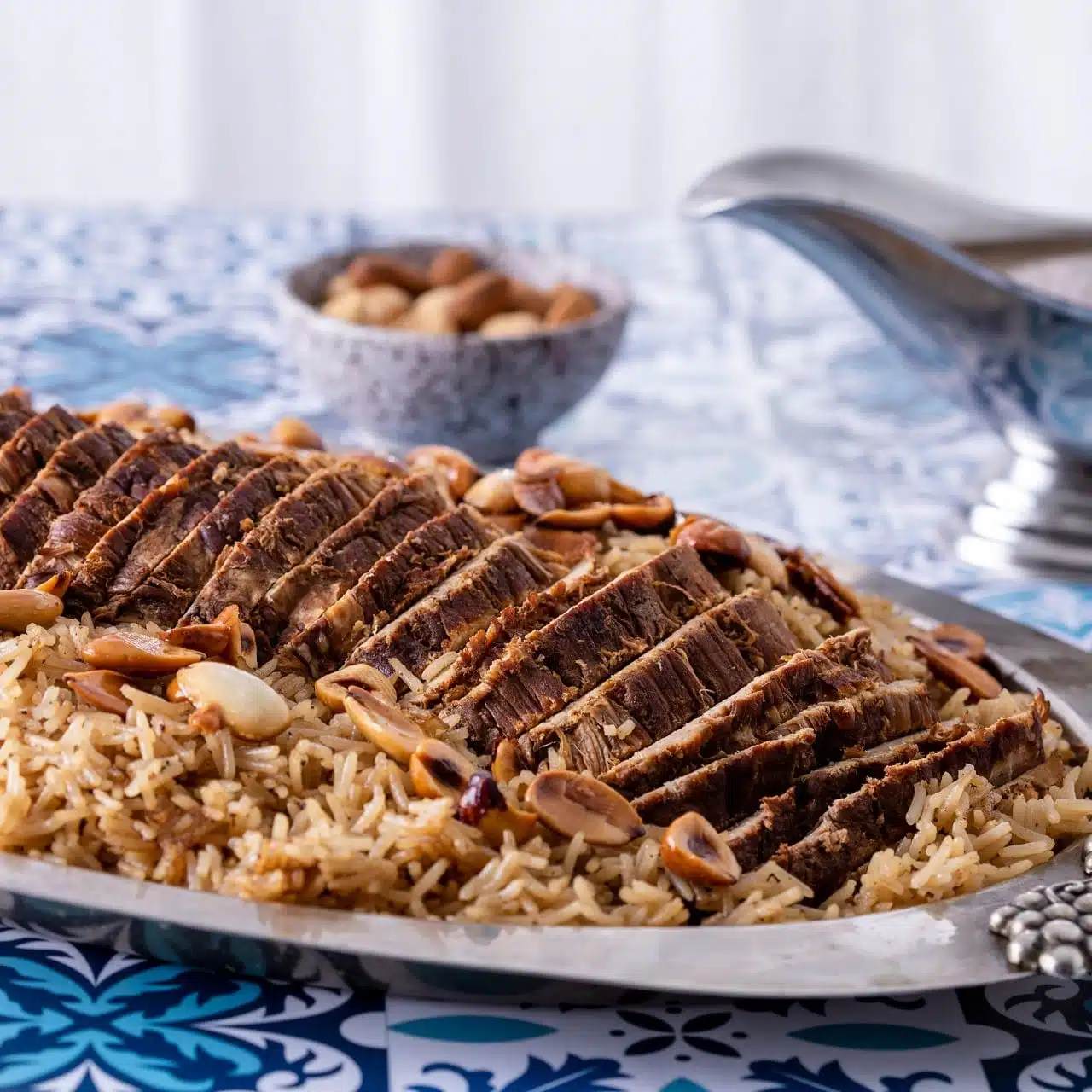 Roast beef served with brown rice
