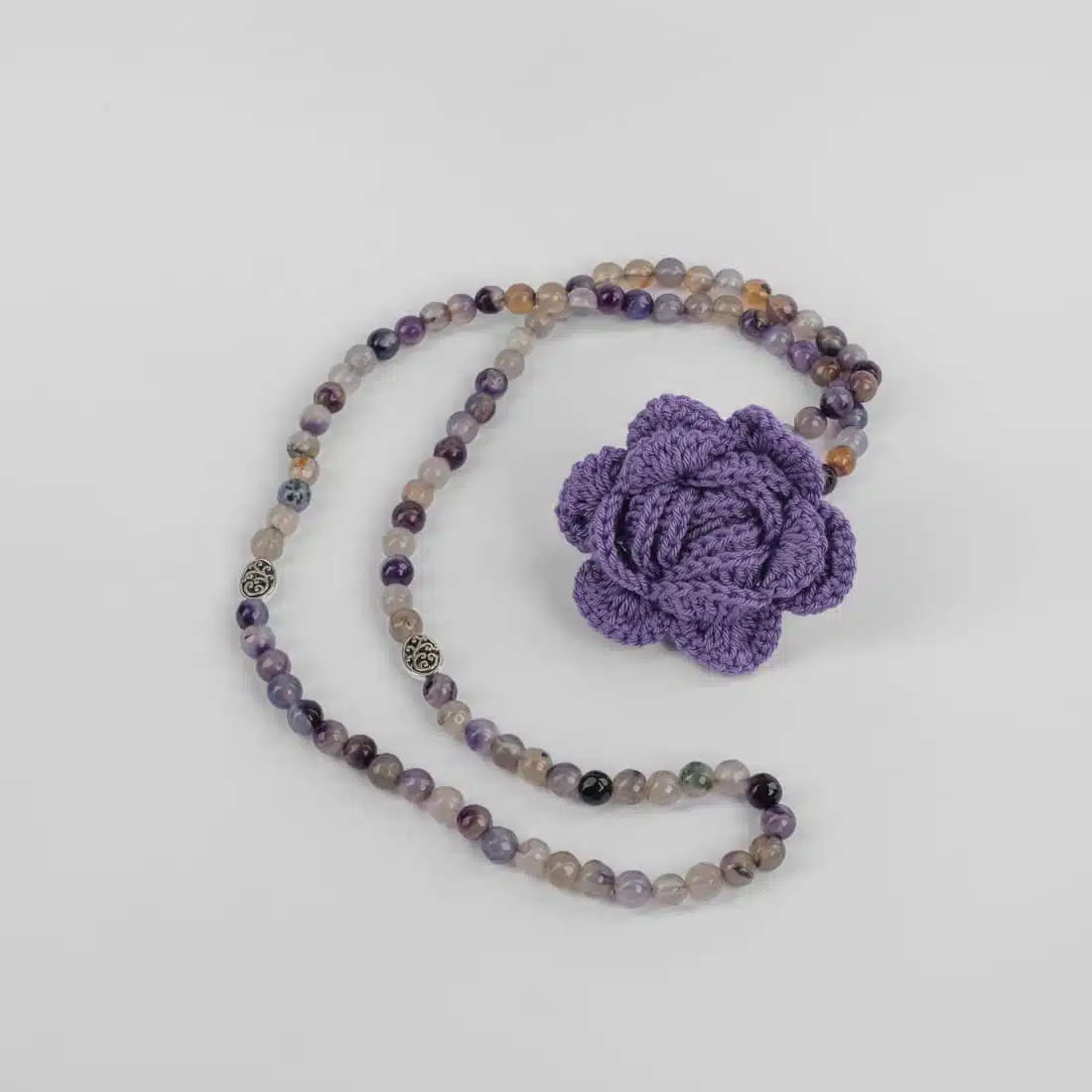 The flower is made of cotton yarn with a silk effect.