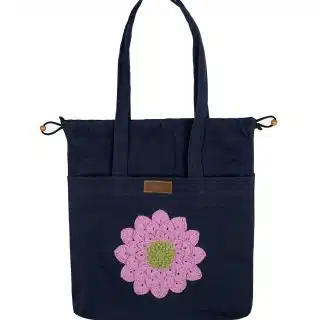 Tote bag with 2 large outer pockets and a small inner pocket.