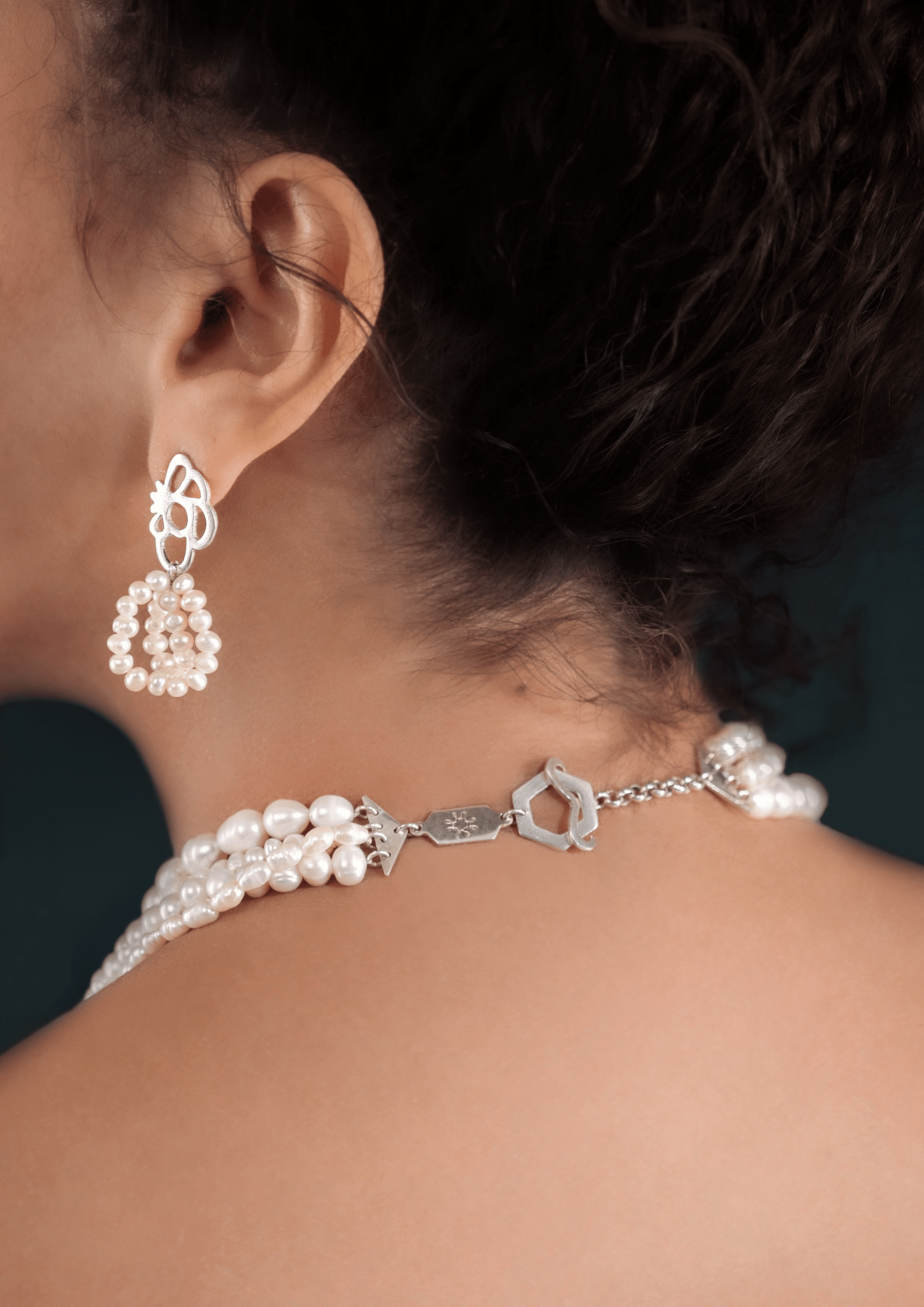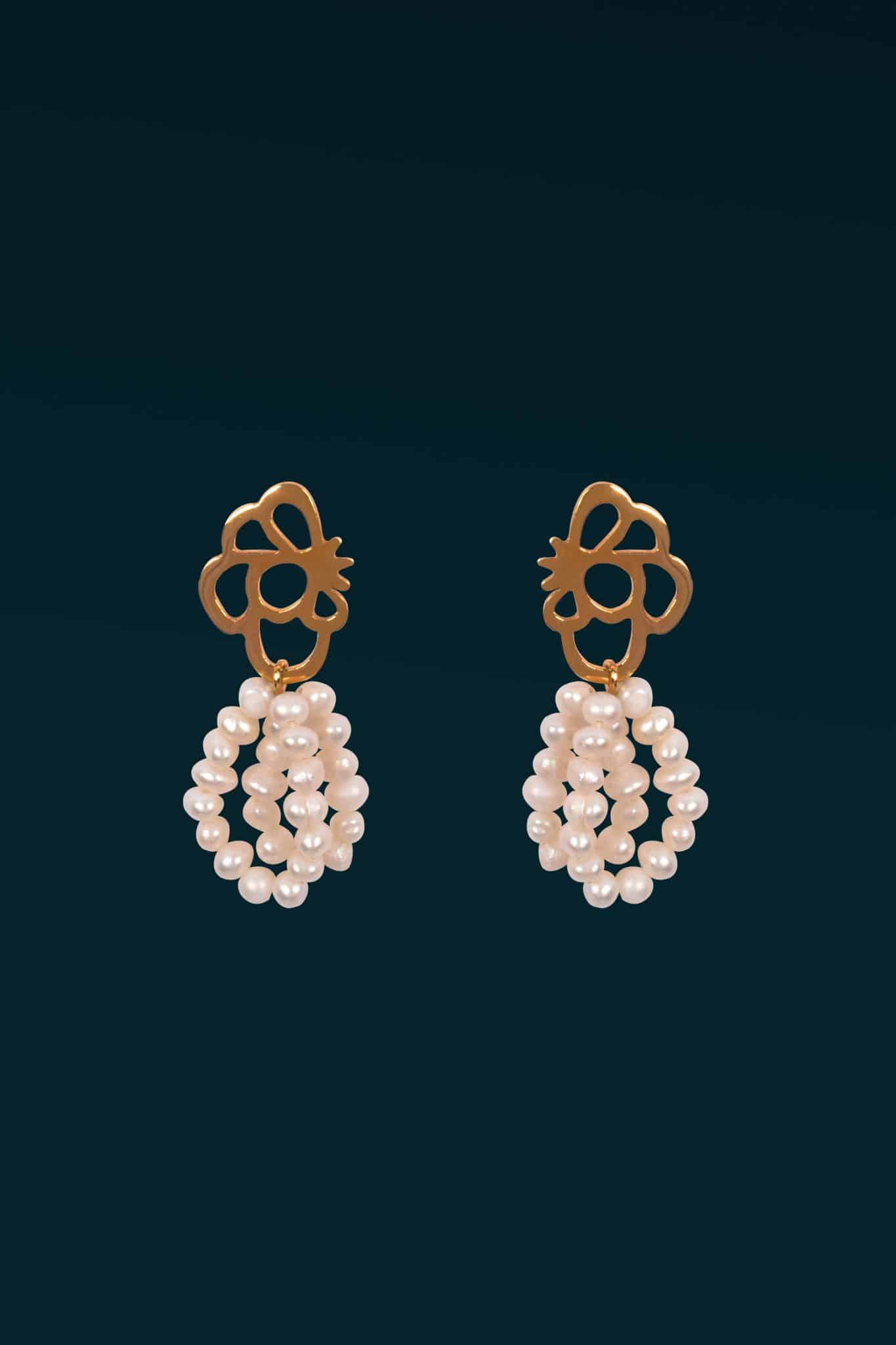 Intricate cut-out floral design that artistically captures the folding of the Camellia flower petals. A variation of the Lavinia earrings with two strands of fine pearls intertwined. The Ruby Wedding earrings stand out in their elegant and sophisticated look.