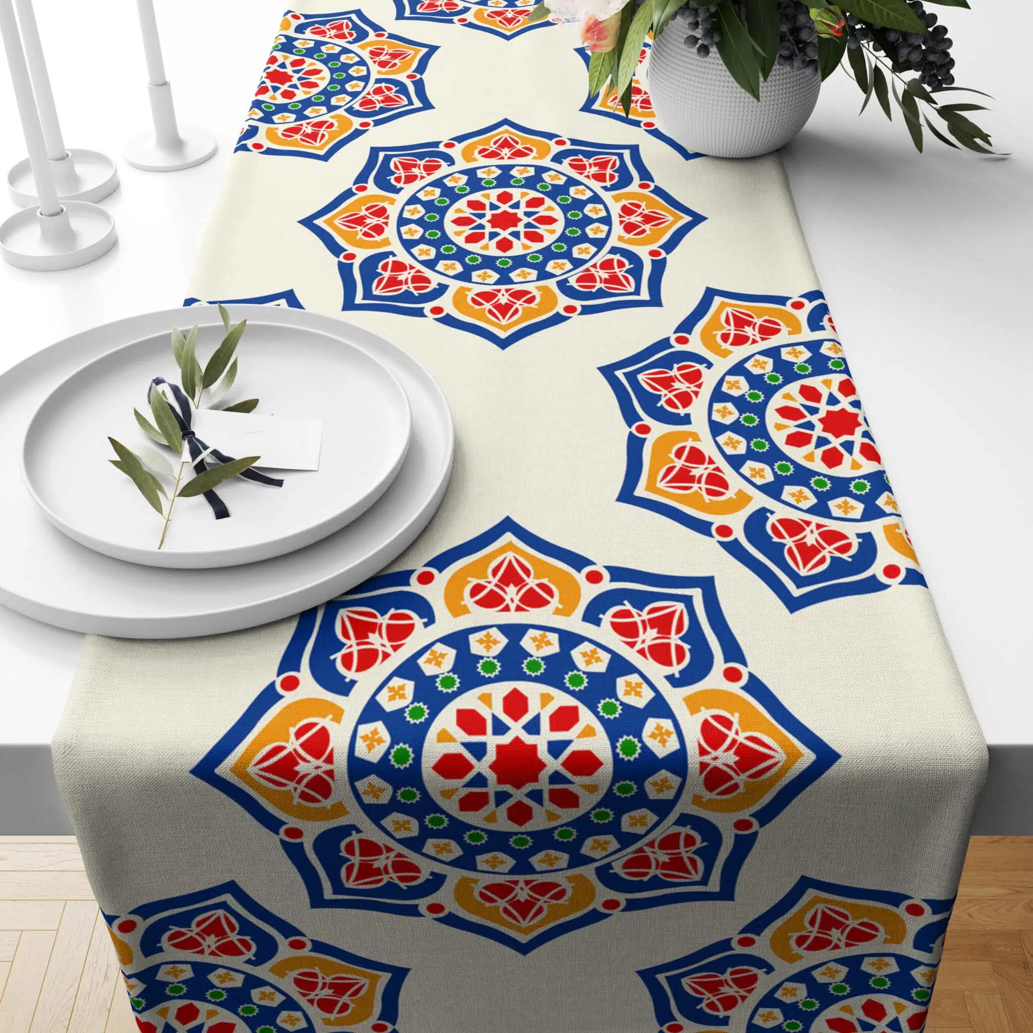 Runner 140×45 printed one side on soft fabric of polyster,.Washable on 30 degree.
