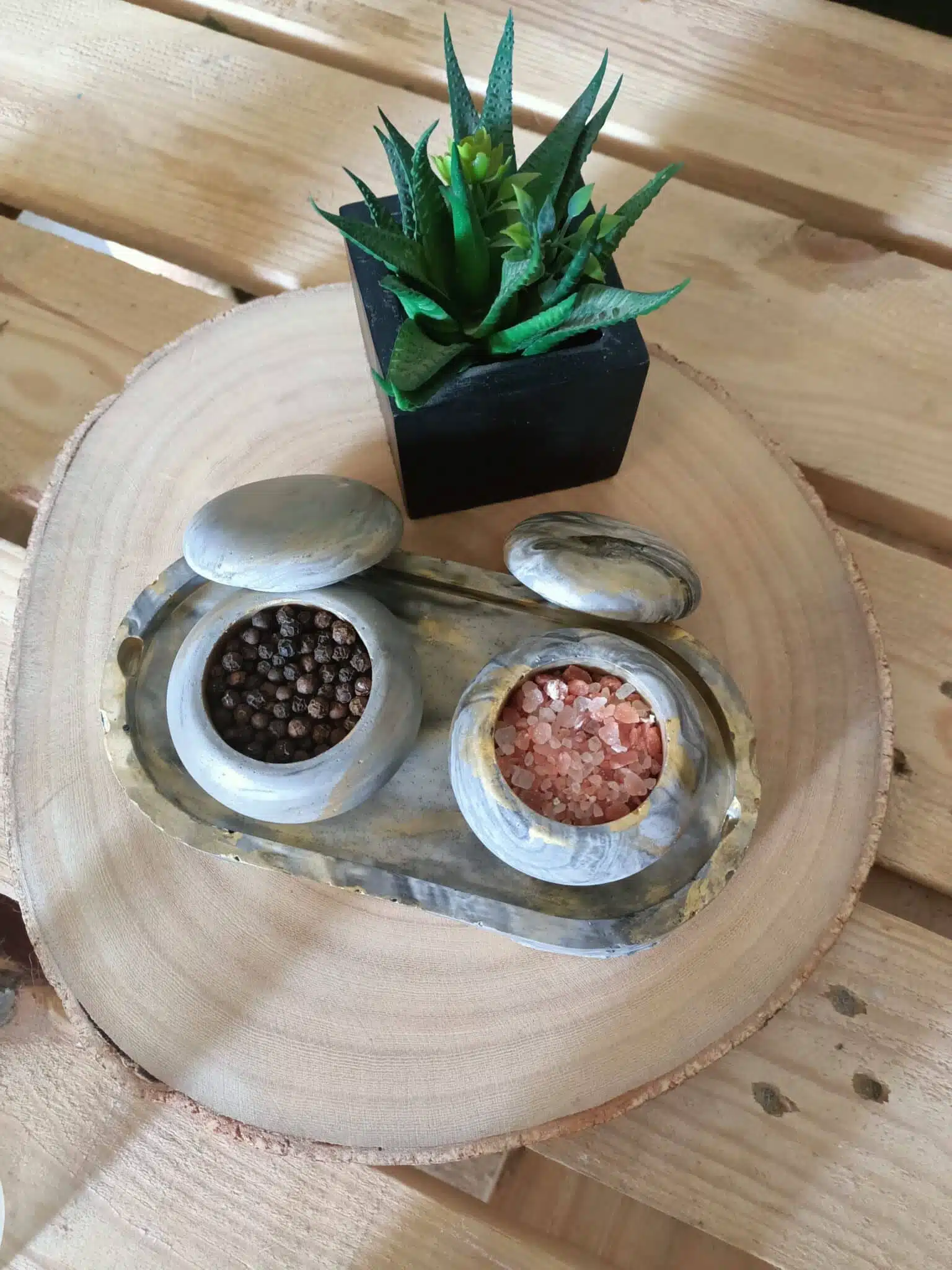 Salt & pepper Concrete set with led & tray