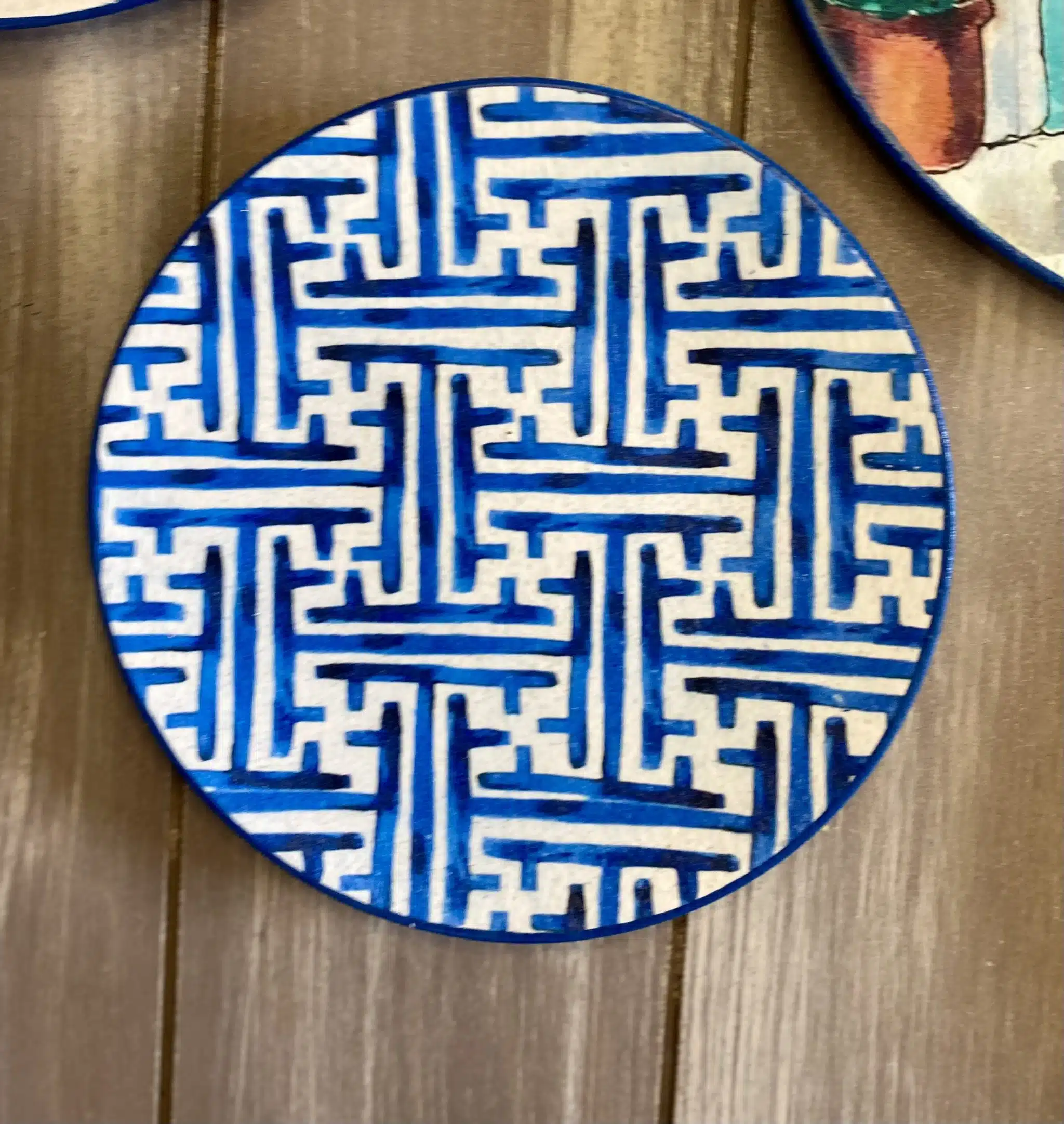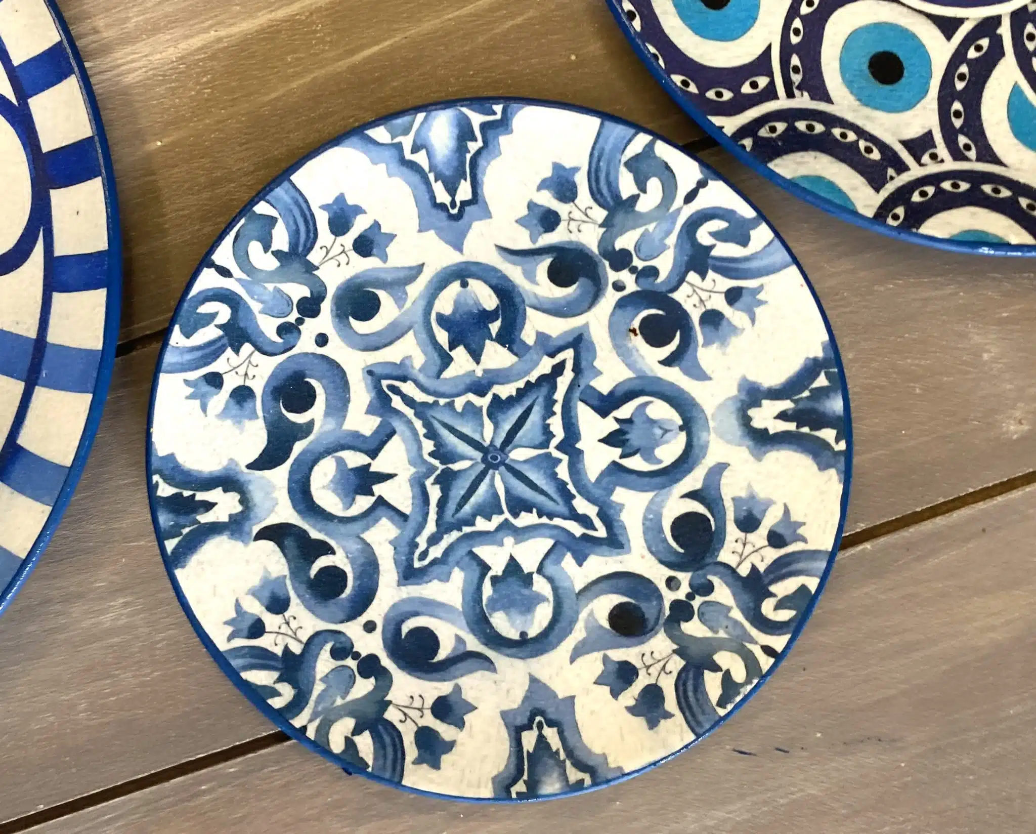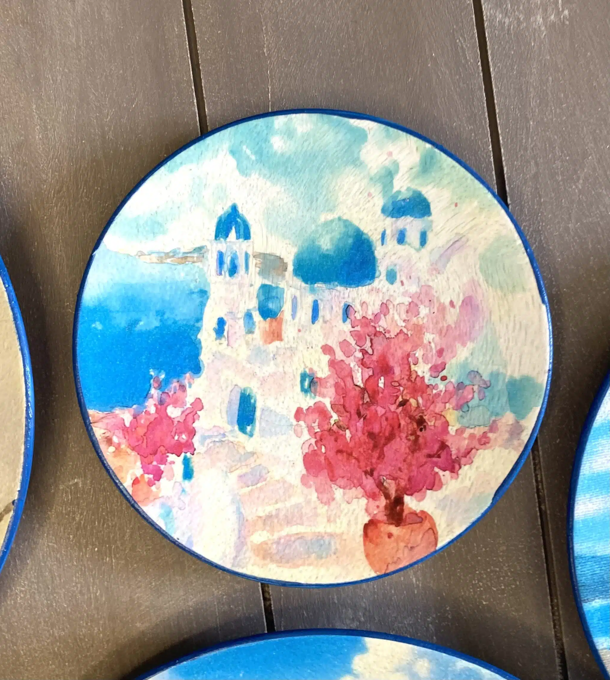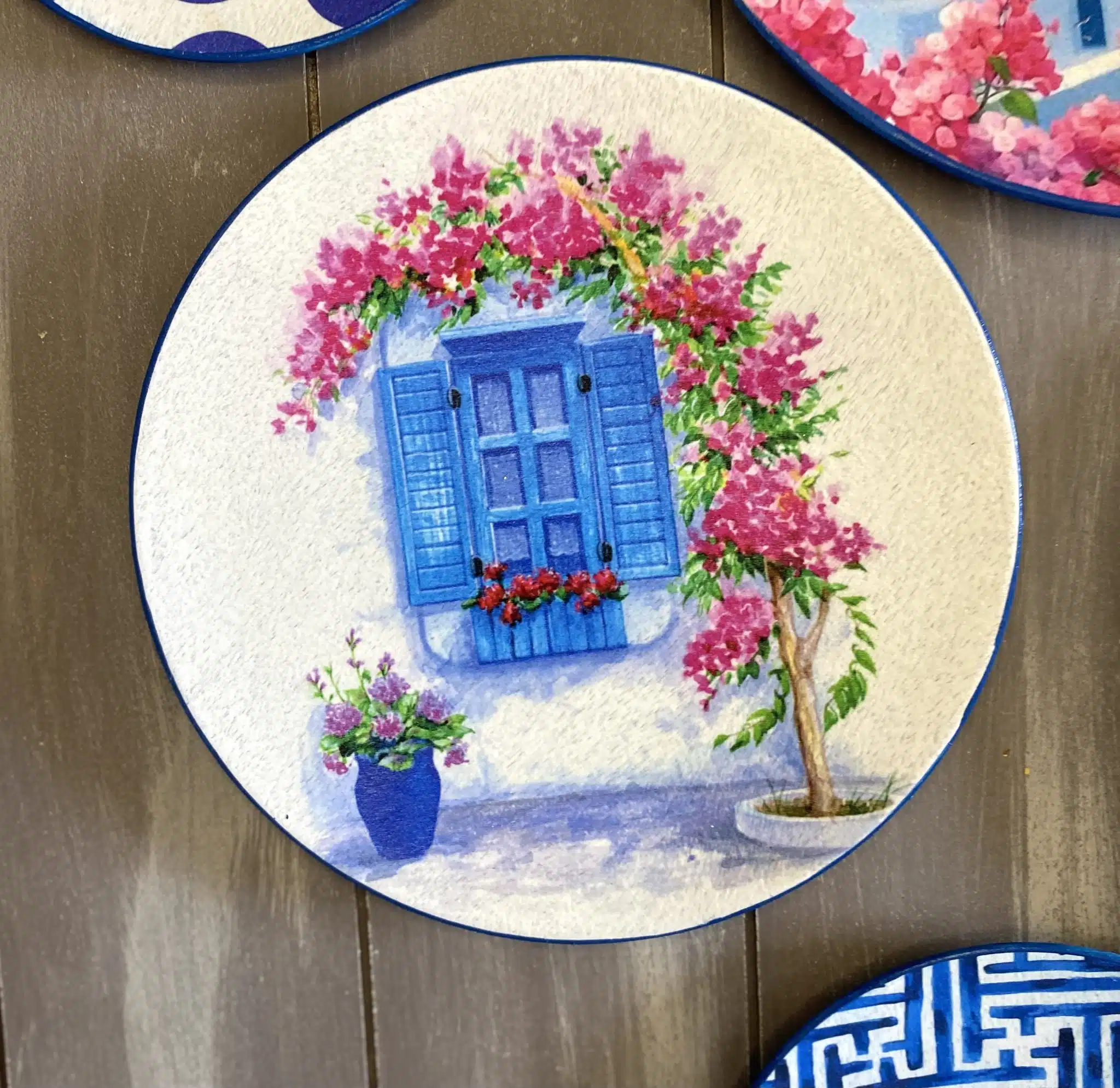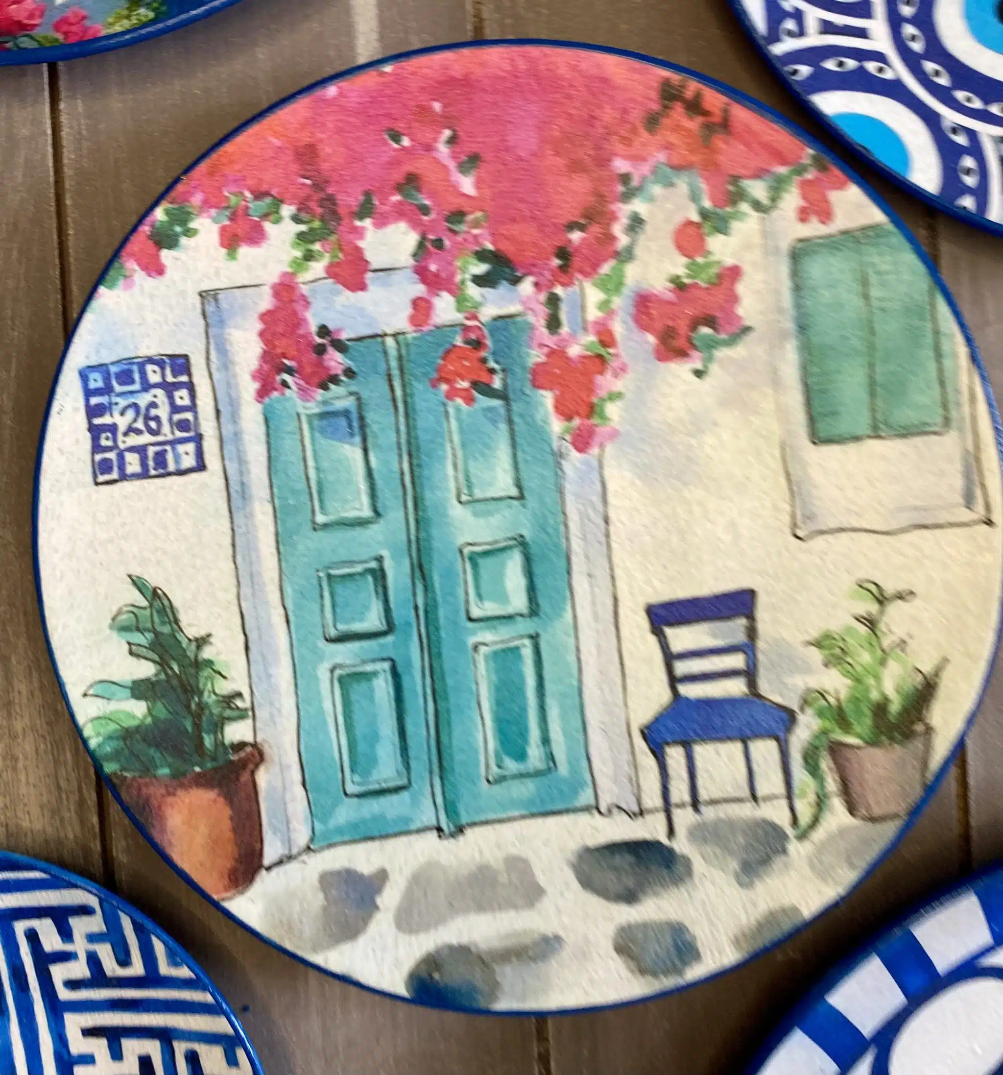 Decoupaged wall plates in Santorini theme and blue eye