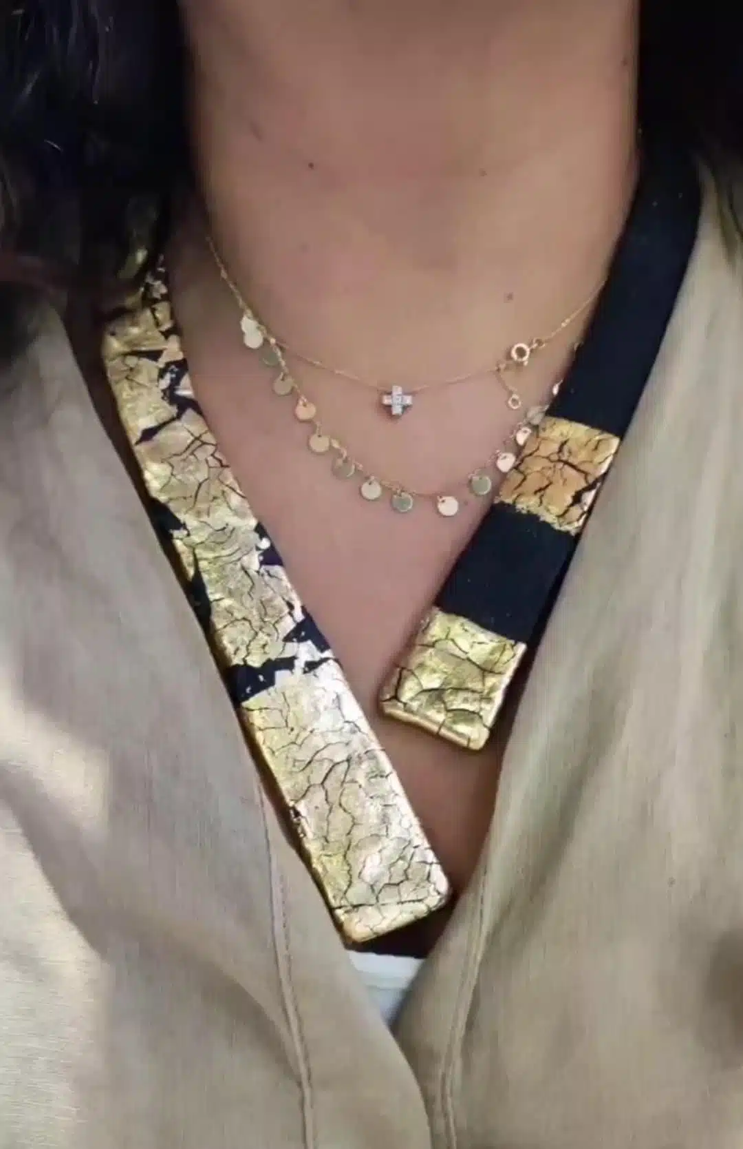 كوليه مفتوح من الامام حر يلف حول الرقبه خفيف الوزن محلي برقائق الذهب