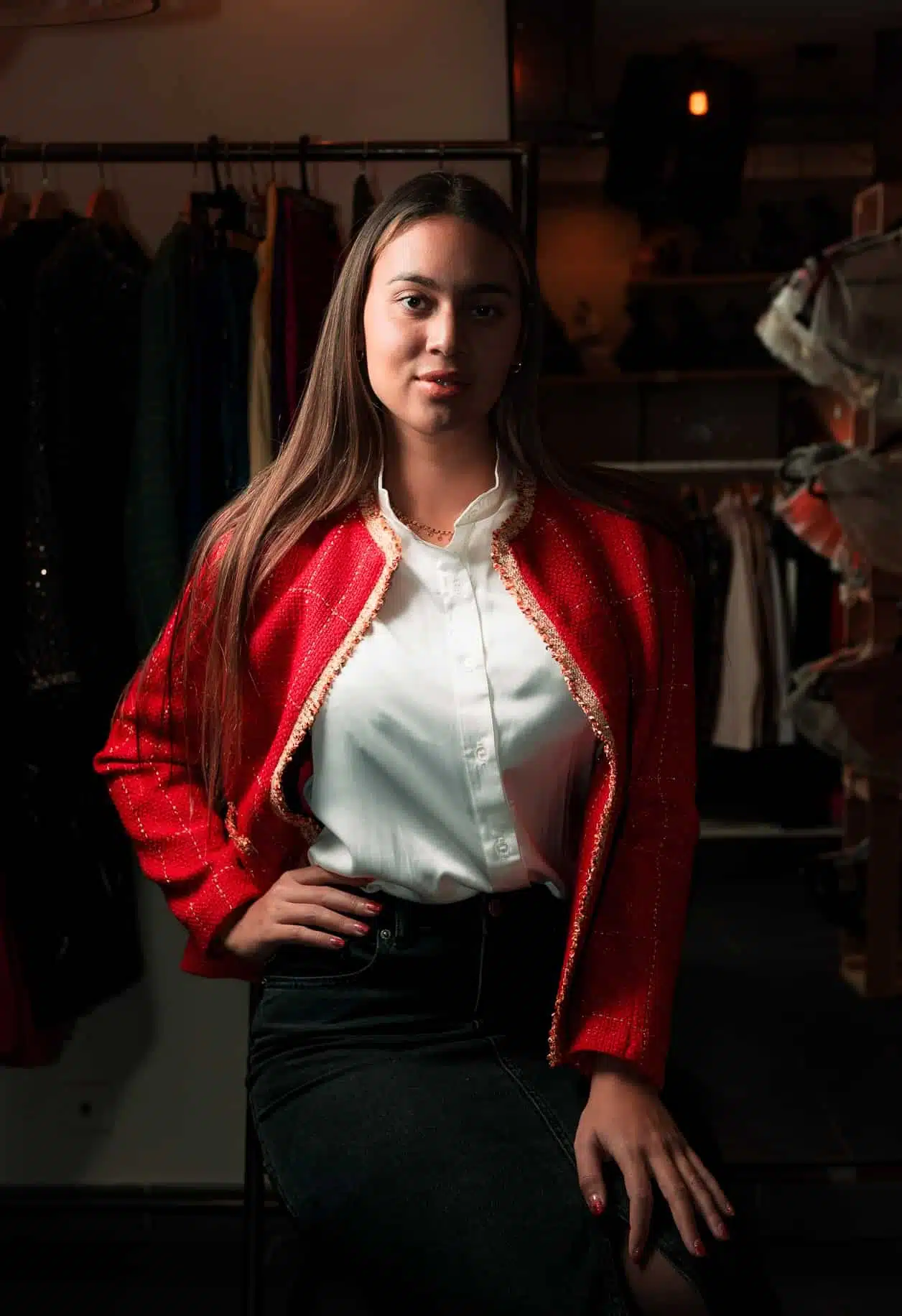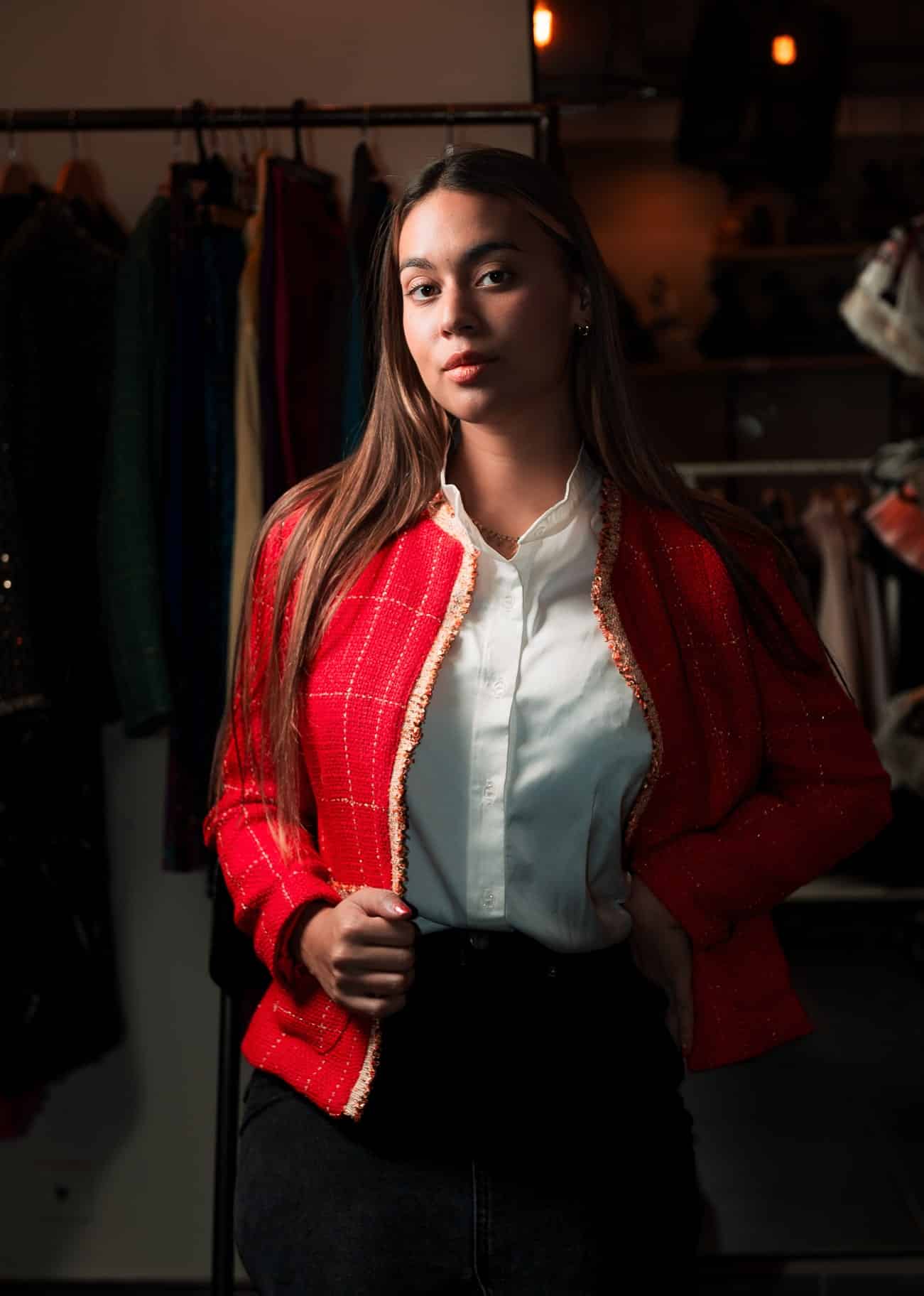 This lovely blazer made of a wool tweed blend, is a magnificent addition to your formal wardrobe. The weaving has delicate golden threads, and to give it an extra edge, we added short fringe trims along the edge and on the pockets.