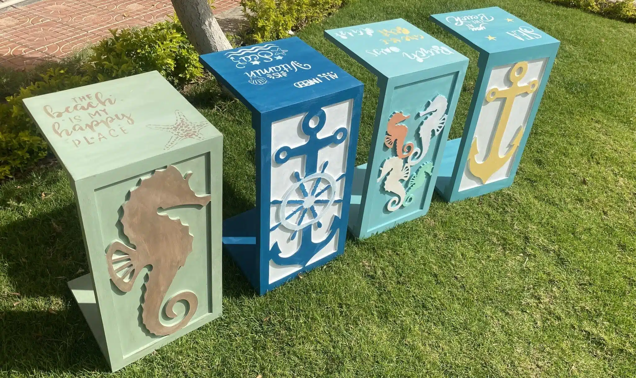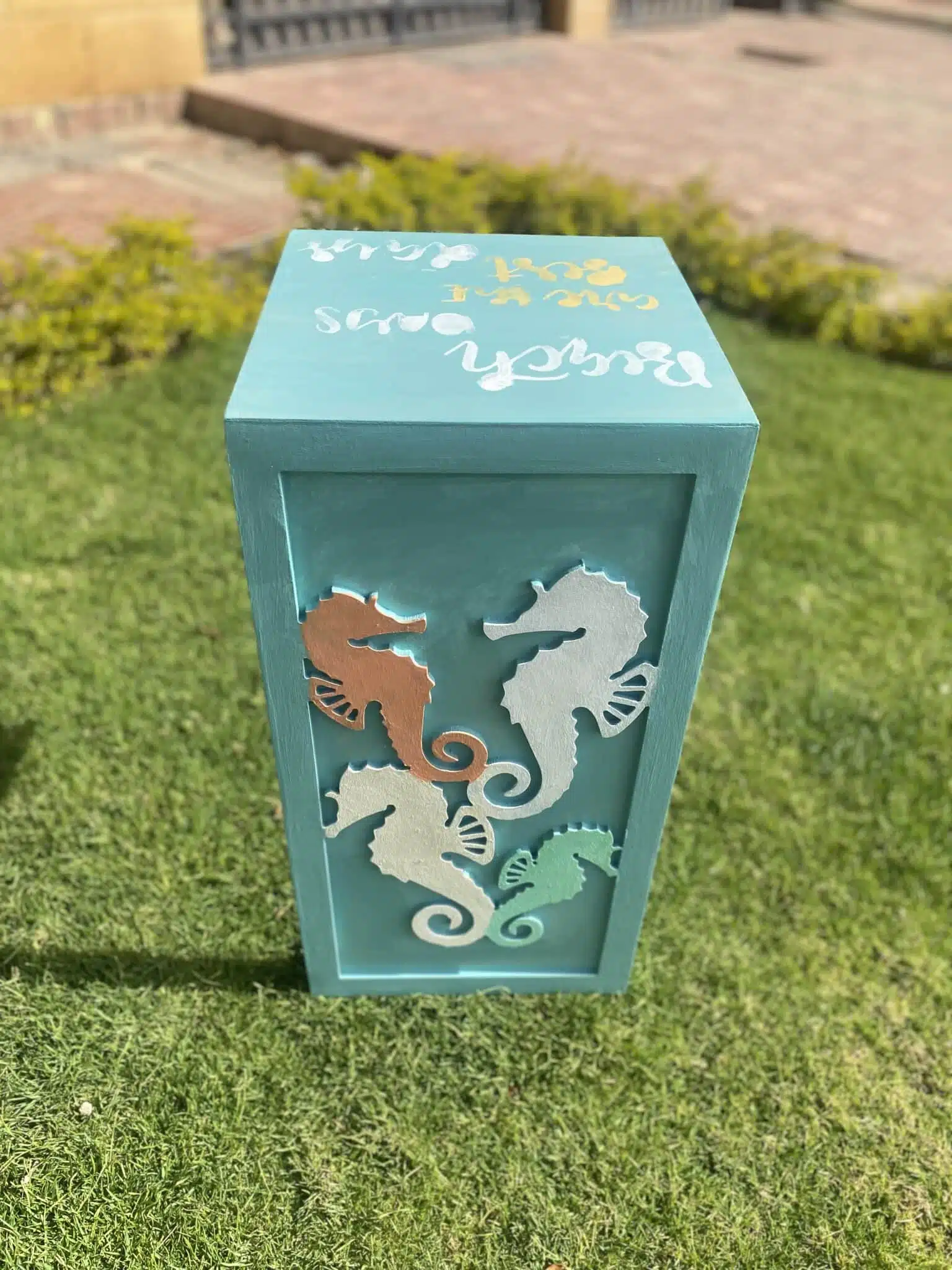 Wooden sofa side table with sea horses collection