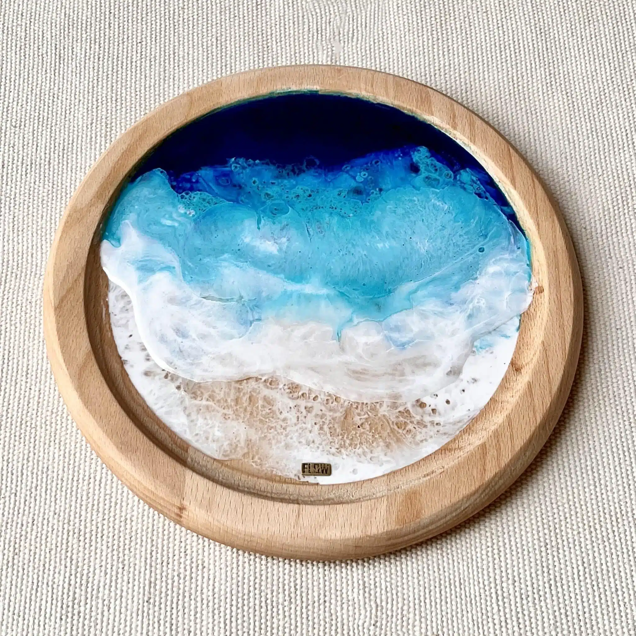 Handmade of epoxy resin on natural wood, treated with olive oil.
