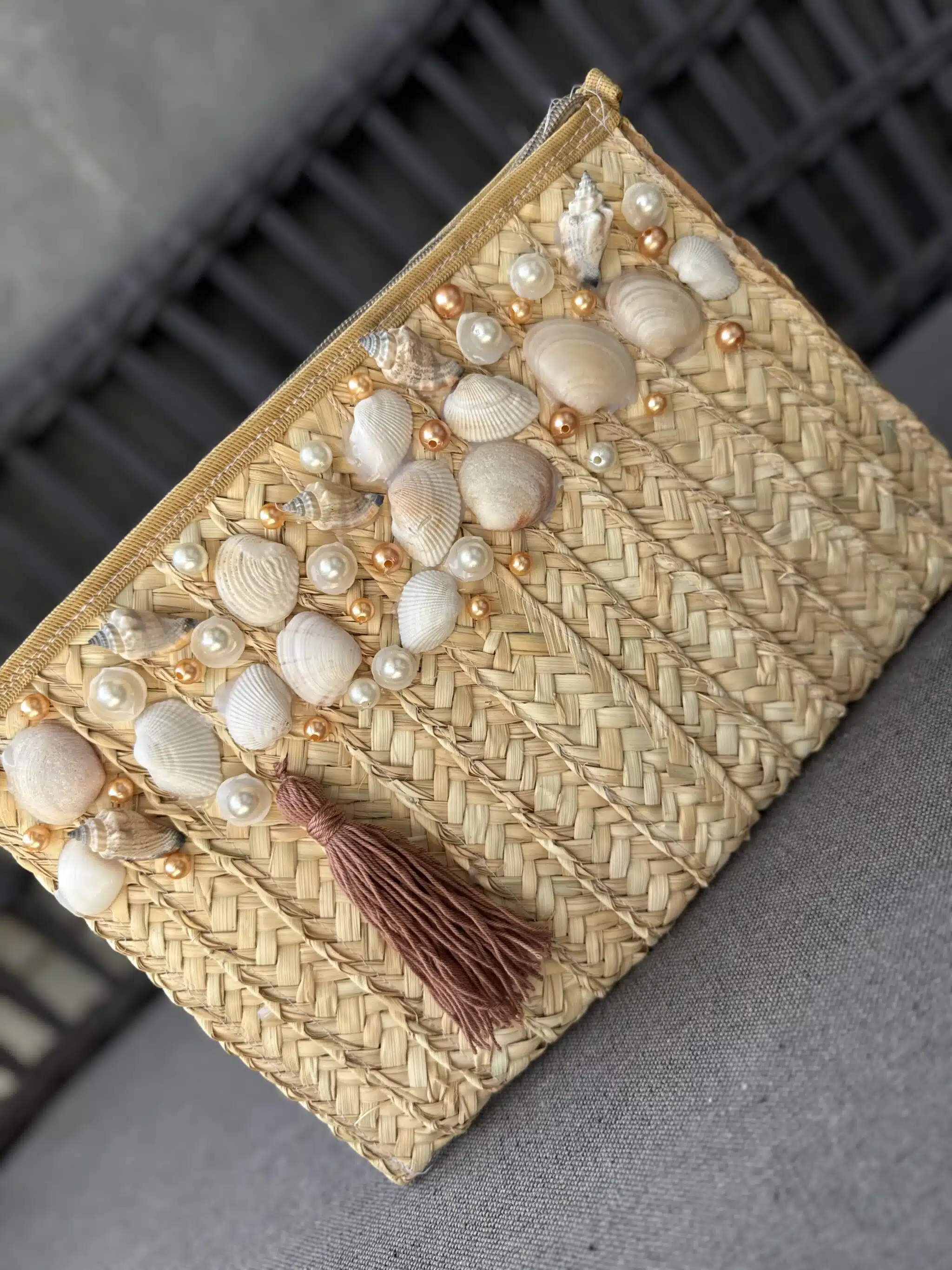 Handmade seashell clutch