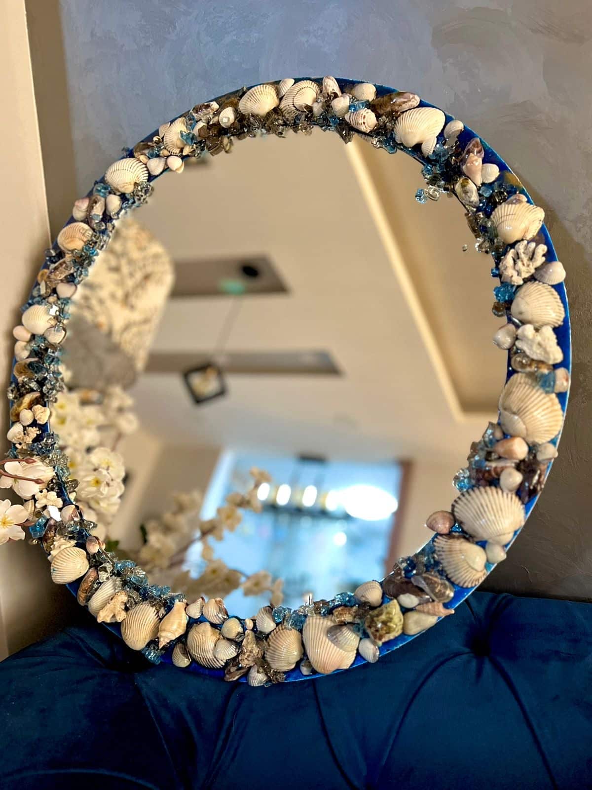 Resin on mirror mixed with ( stones – crystals – seashells)