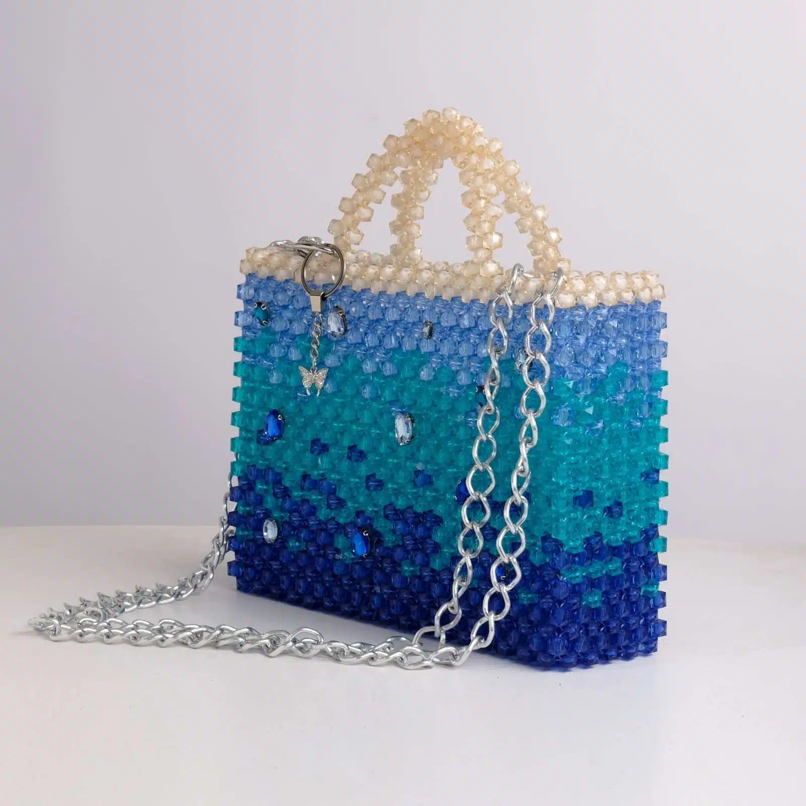 Dimensions: 19 cm width* 25 cm length* 8 cm depth, 80 cm double silver chain.