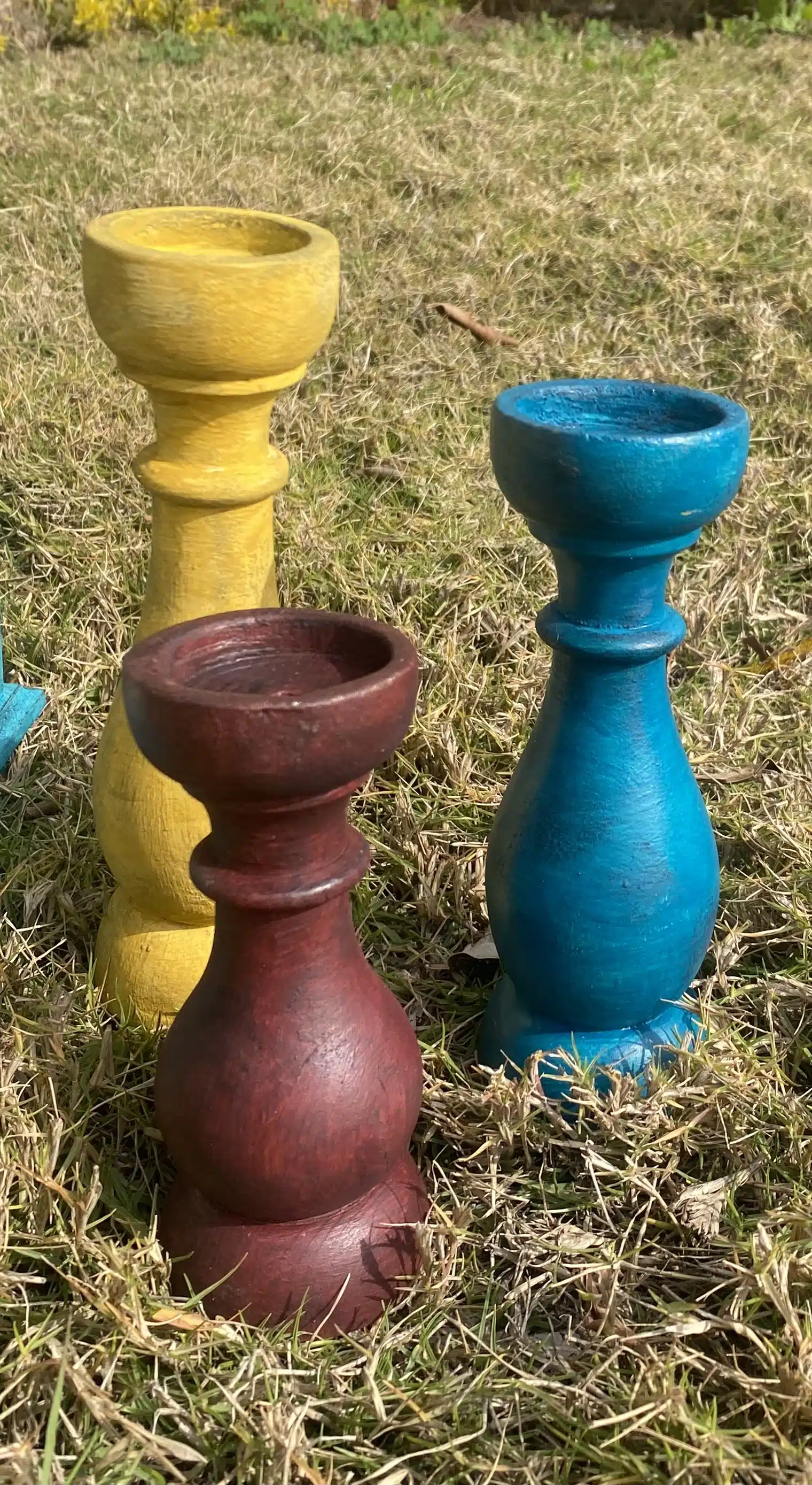 Natural wood candle holders in mix of colors