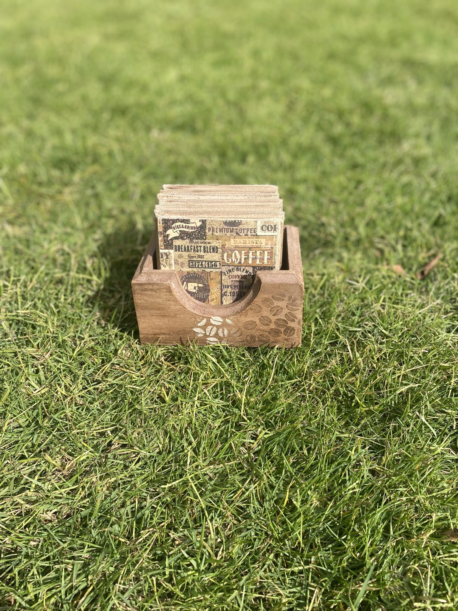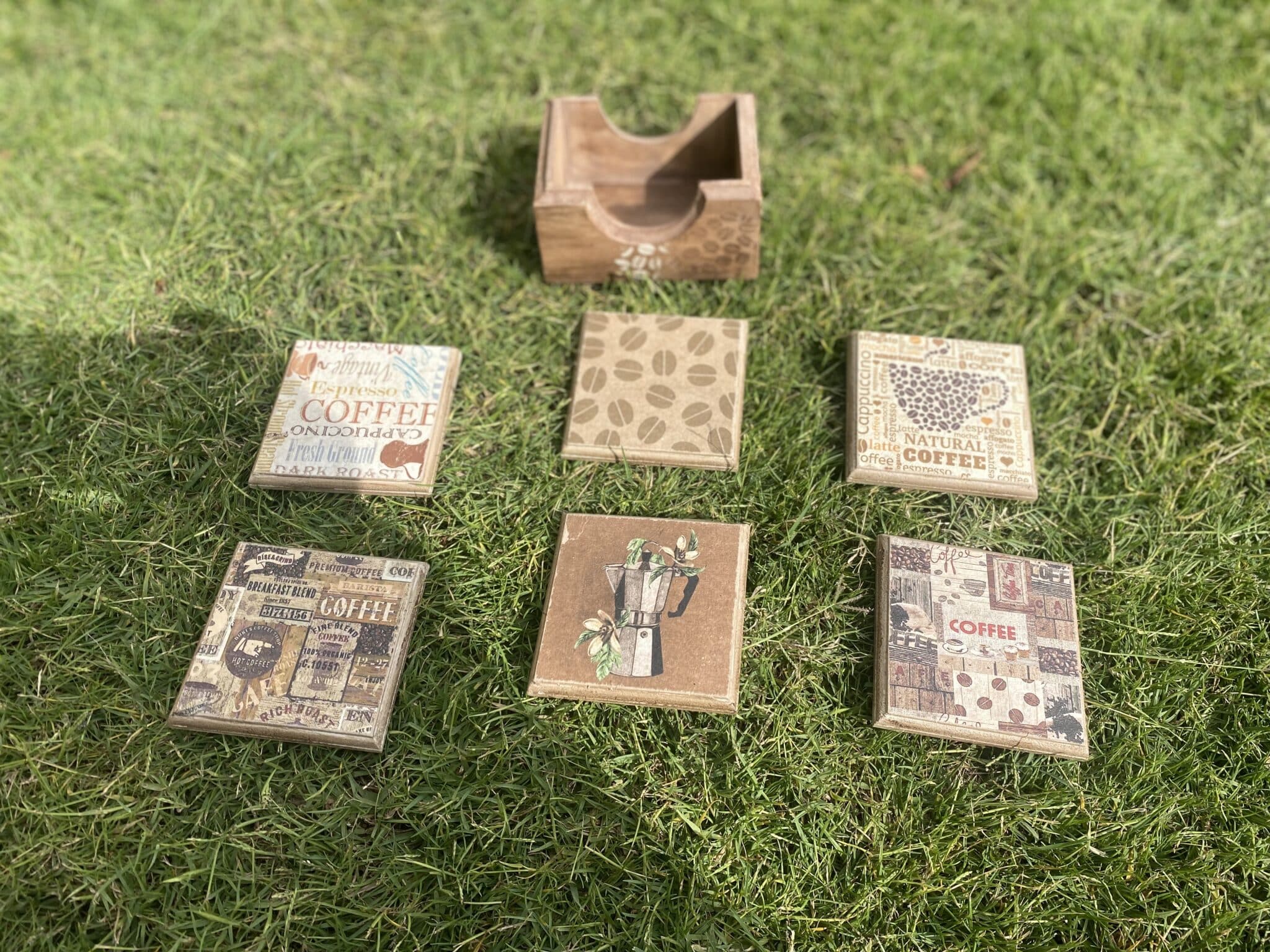 Set of Coffee Capsules Holder & Coasters Rustic Brown