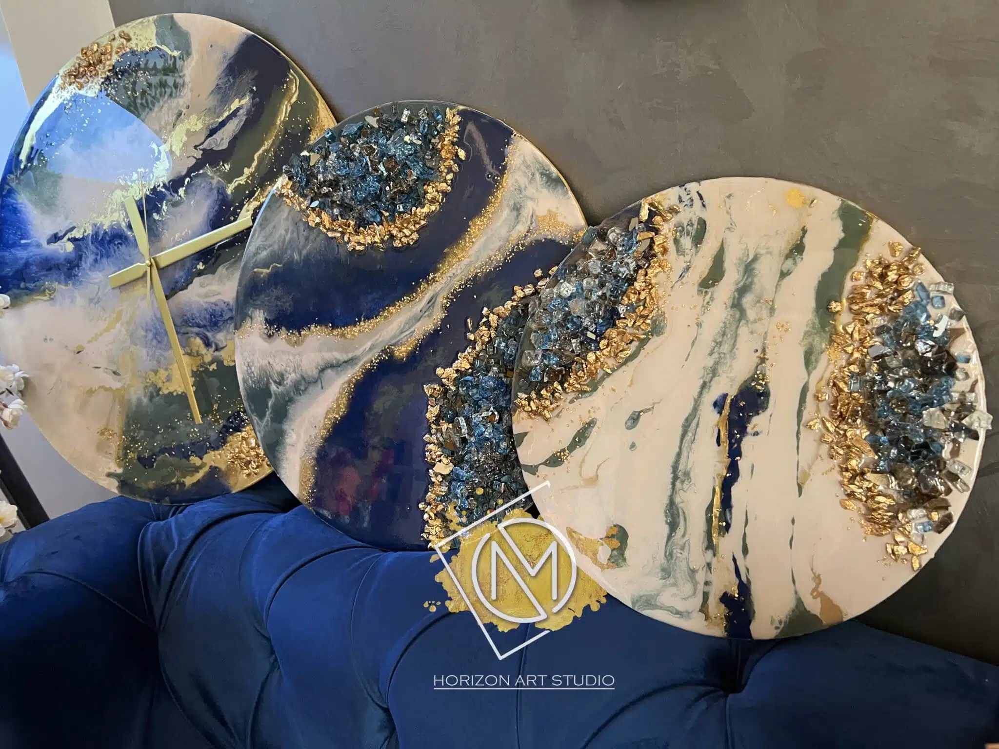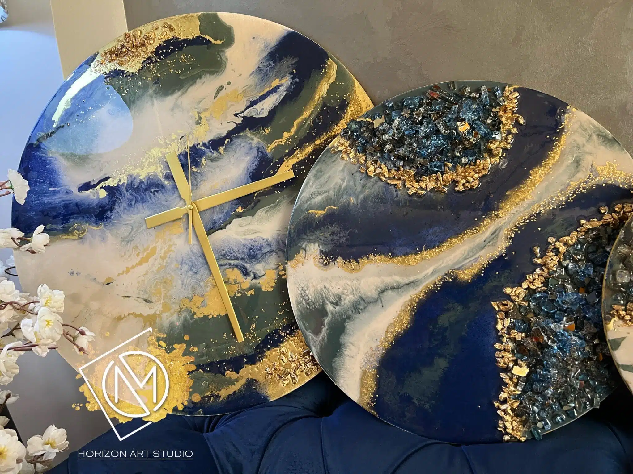 • Shiny Luxurious Resin surface on wood mixed with stones and crystals