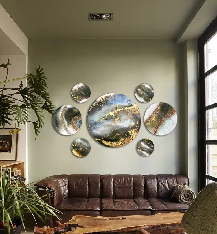 ( wall clock 50cm ) + ( 4*20 cm plates ) + ( 2*35 cm plates )
