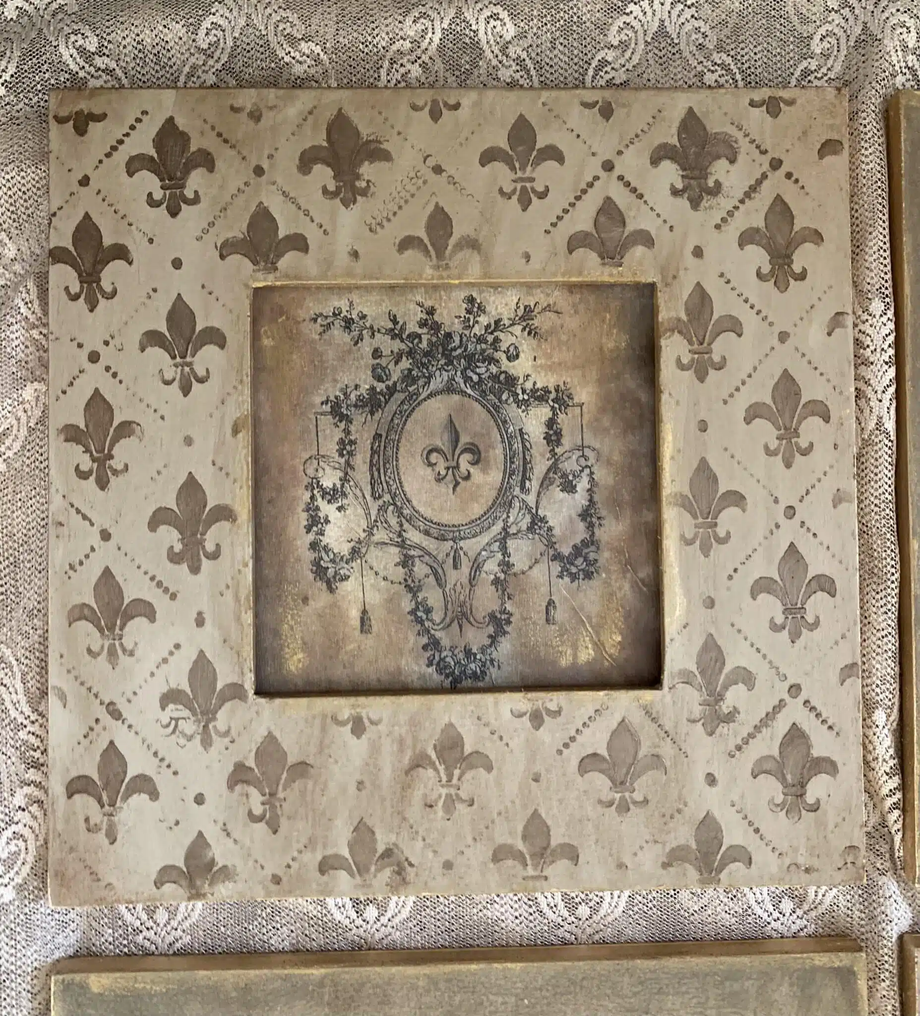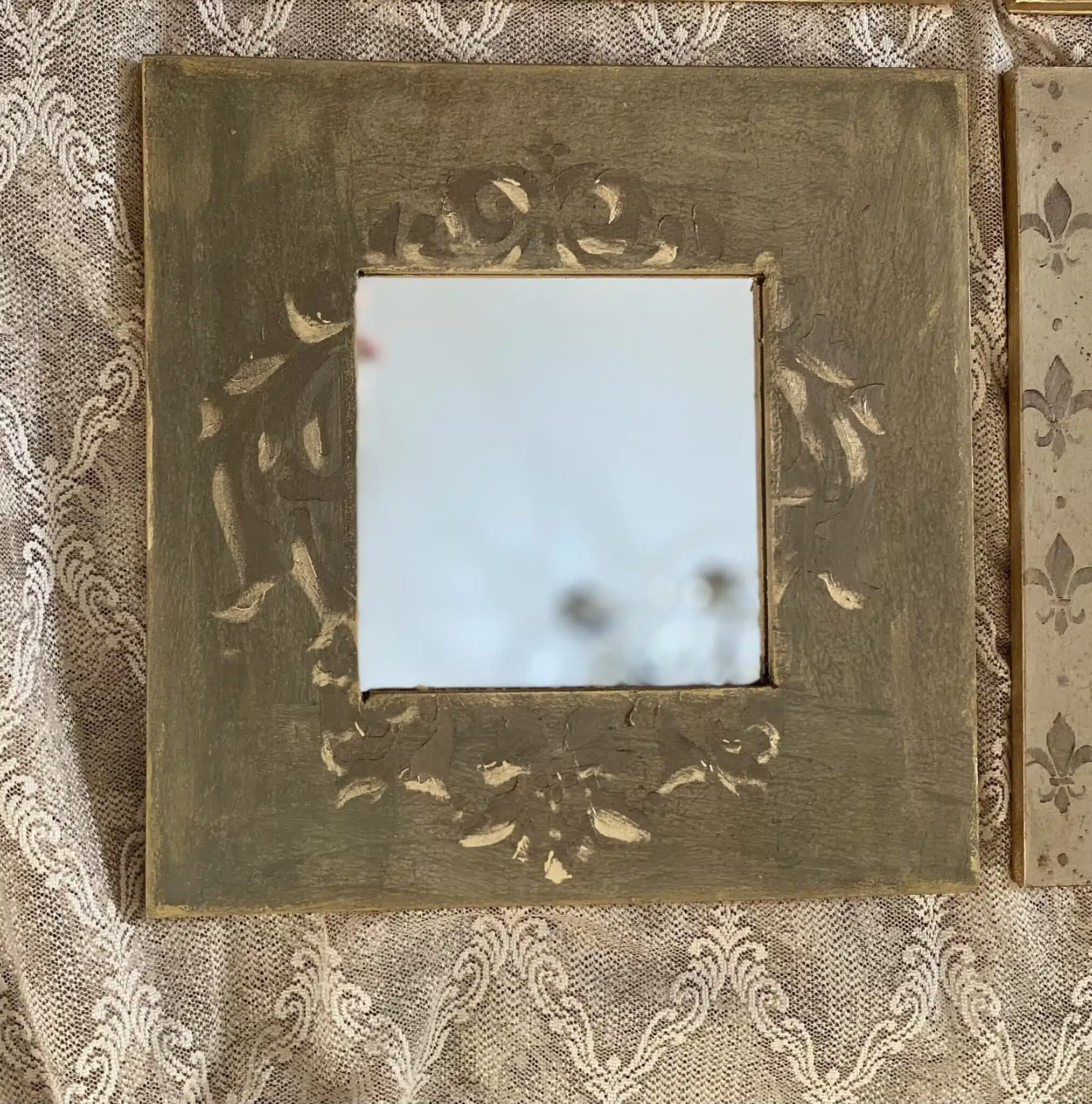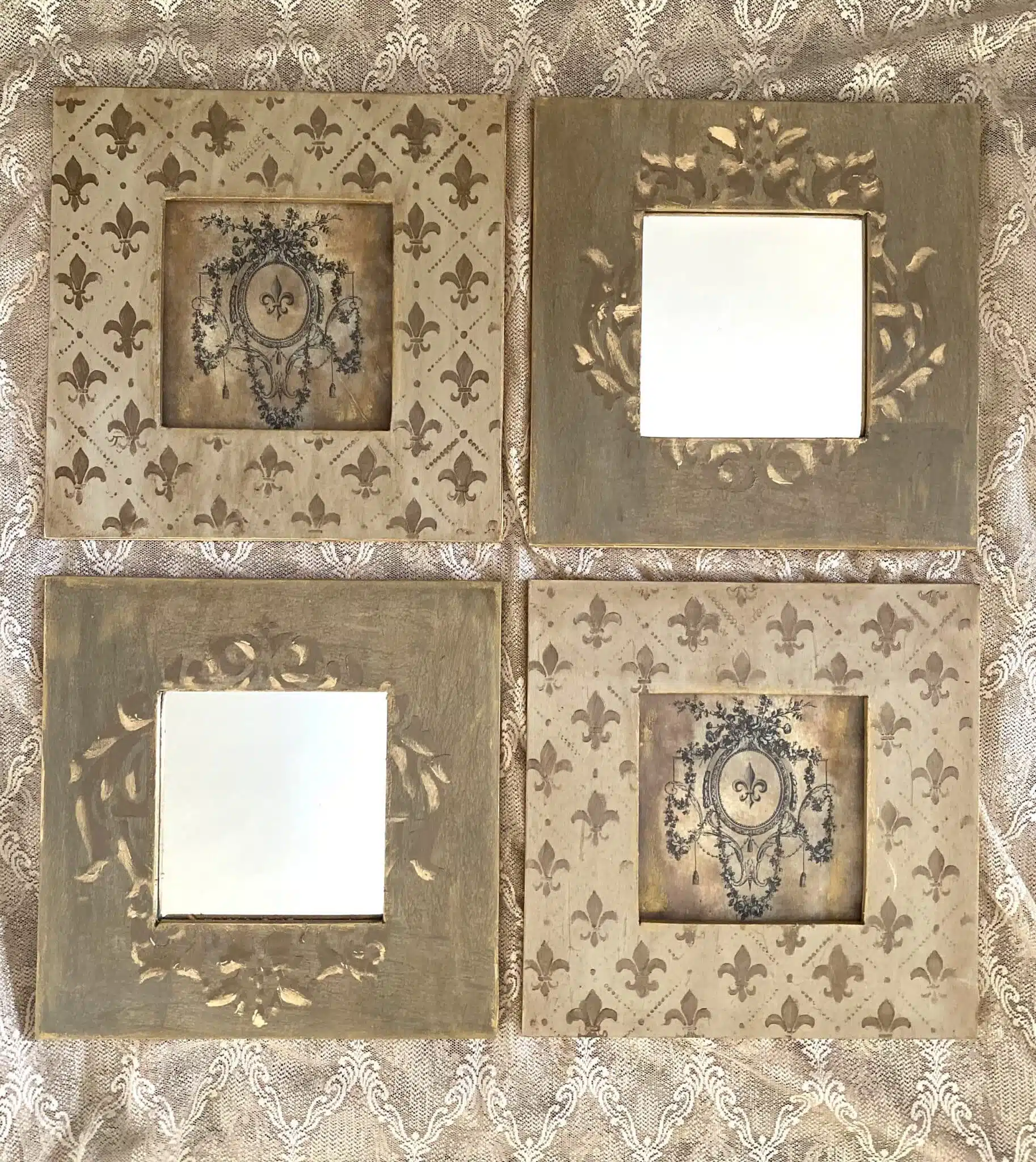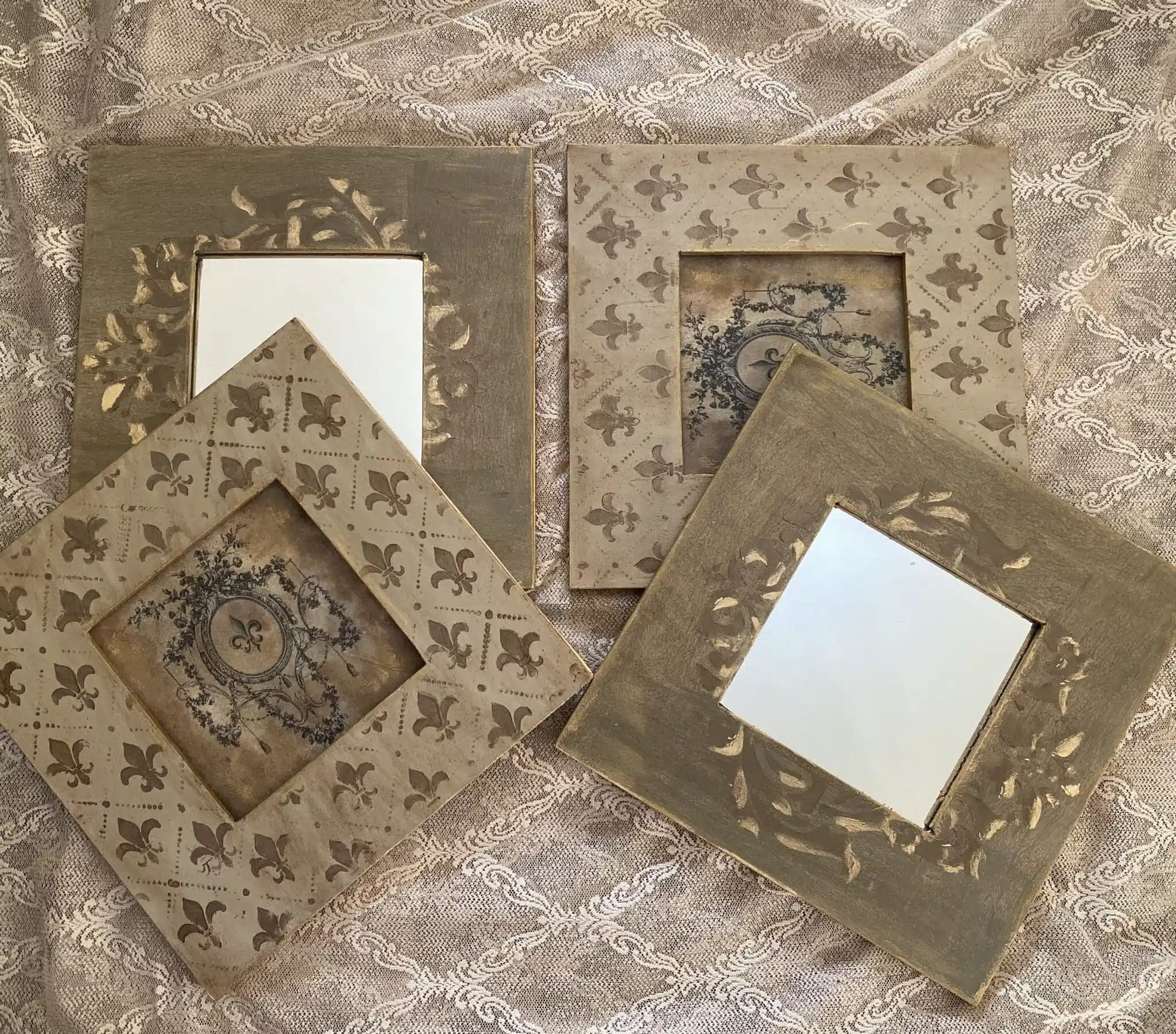 Wooden wall decor set: 2 mirrors and 2 tableaux vintage style