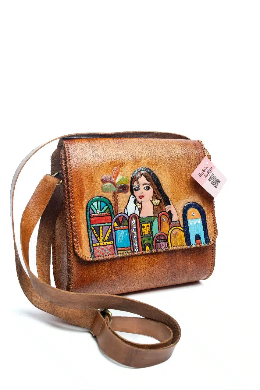 - A distinctive genuine leather bag, entirely handcrafted using the embossing and engraving technique, featuring cheerful designs and colors that will lift your mood. 25*26*9A distinctive genuine leather