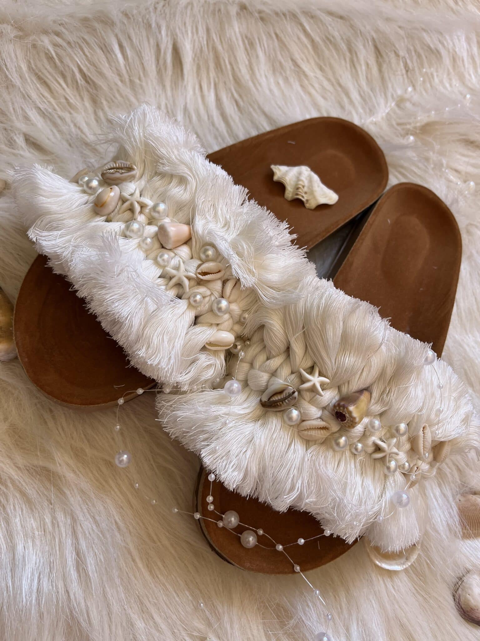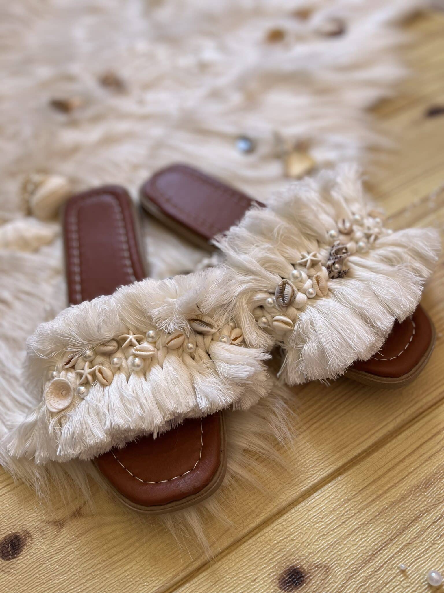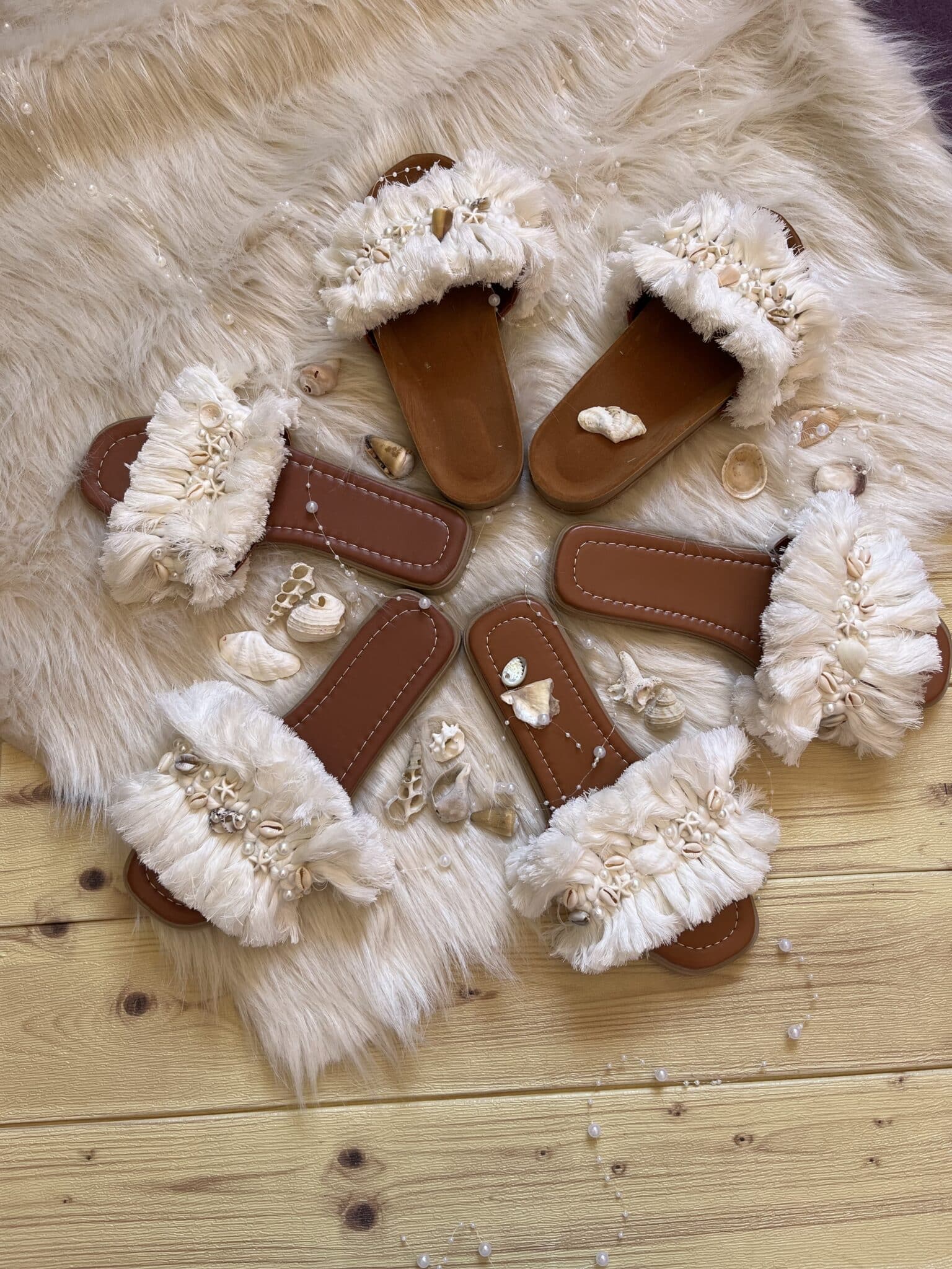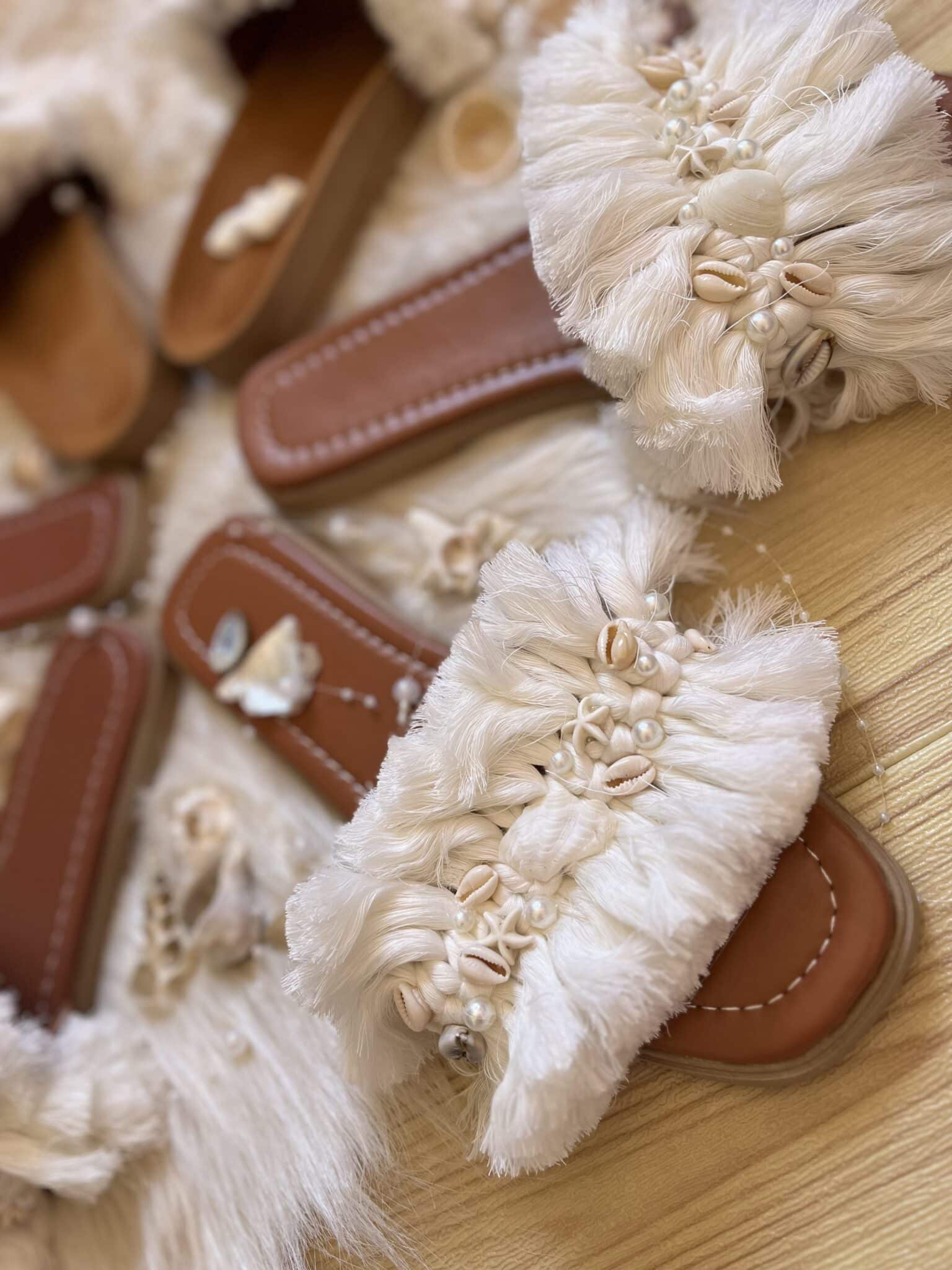 Shell Slipper very comfy with fluffy macrame Available size 36, 37 ,38,39,40