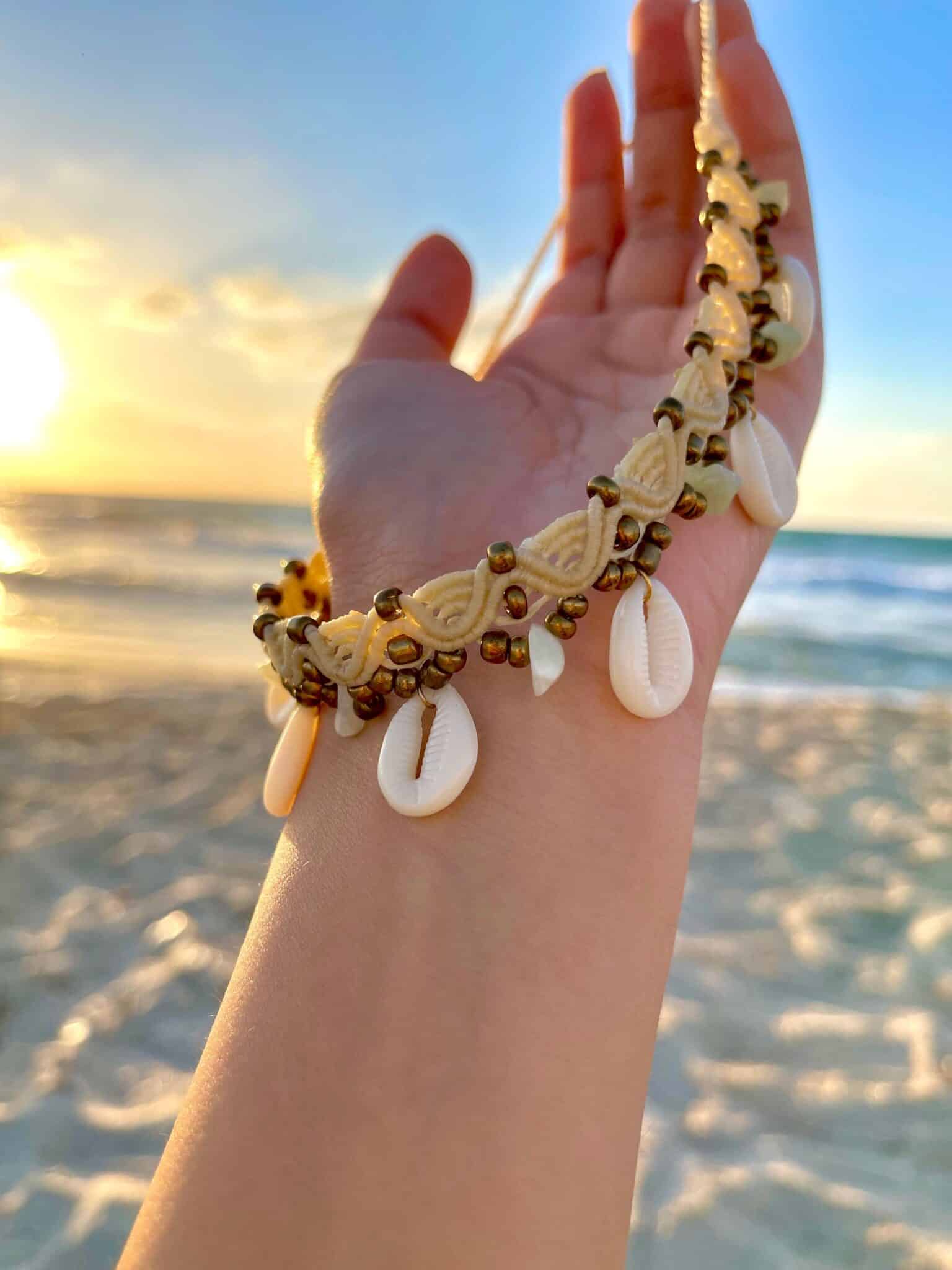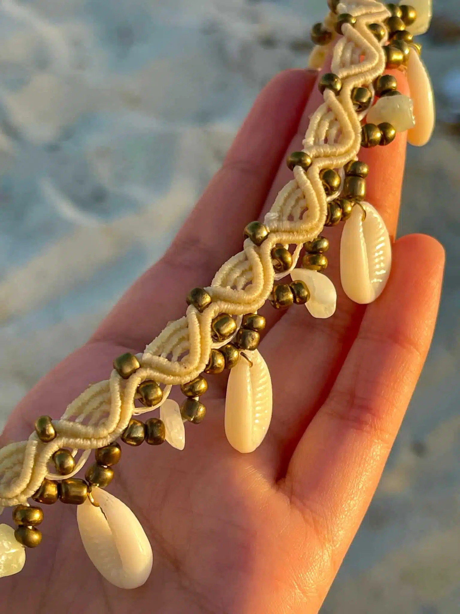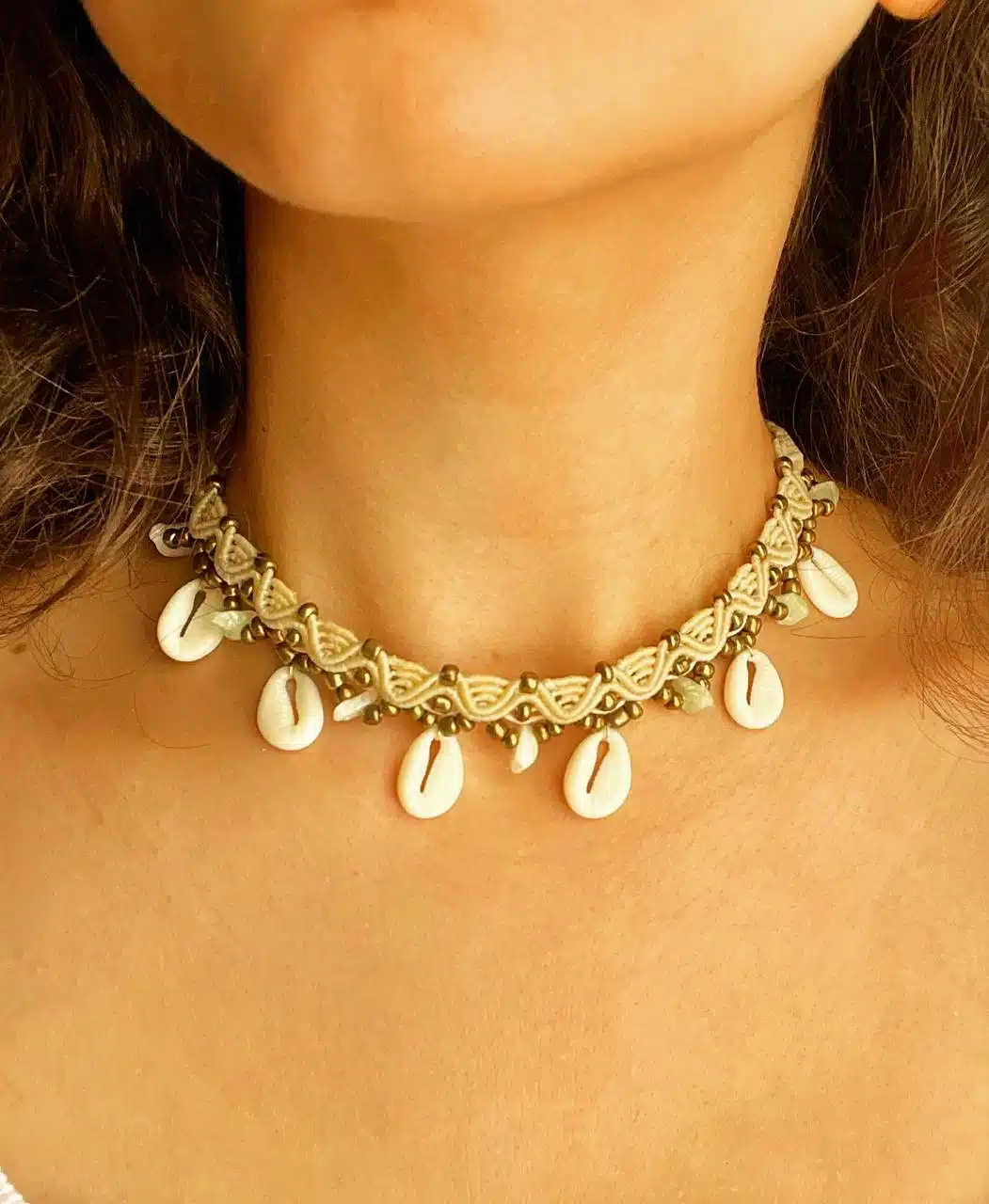 A handmade adjustable Choker created by Beige cords mixed with sea shells.