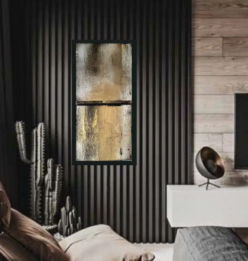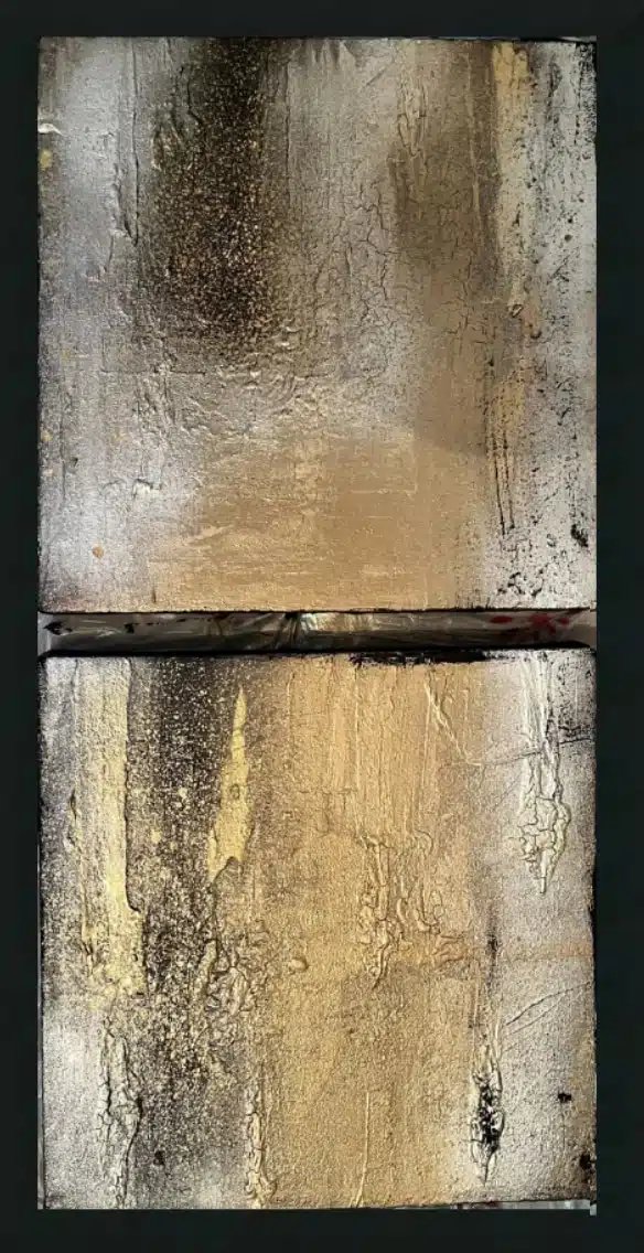 Mix media acrylic abstract art on canvas set of 2. Several techniques and creative design