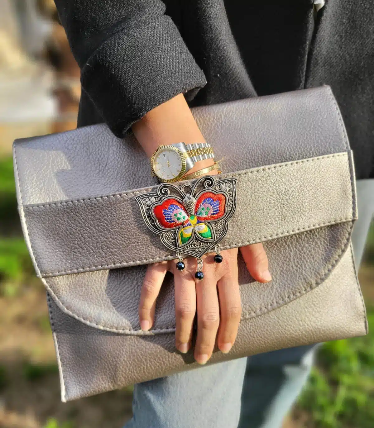 silver gray clutch envelope style