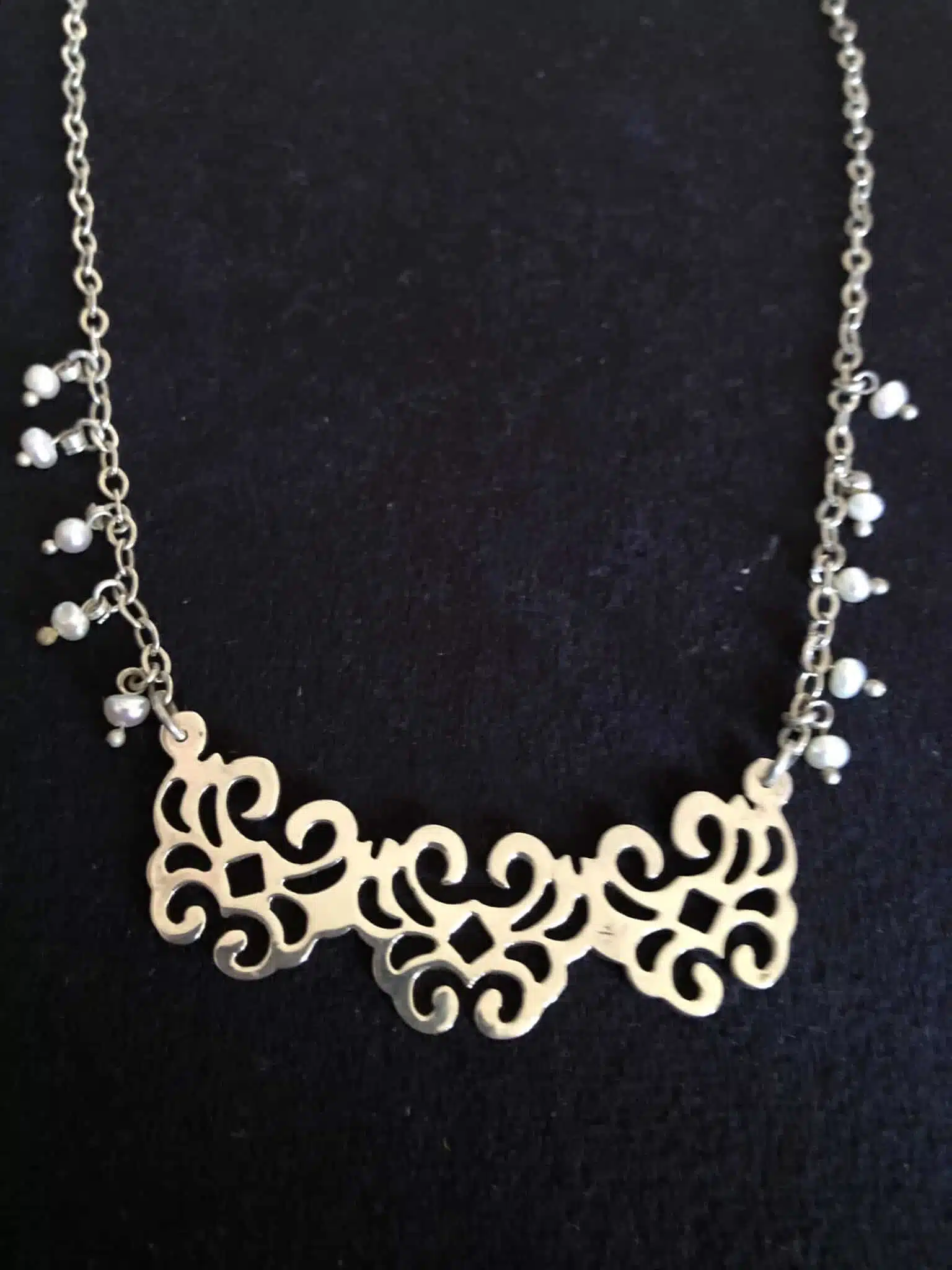 Silver necklace and fresh water pearl.