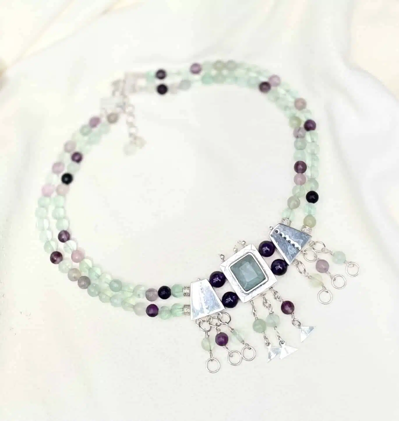 Be the first to review “Silver Necklace with fluorite stone and beads”