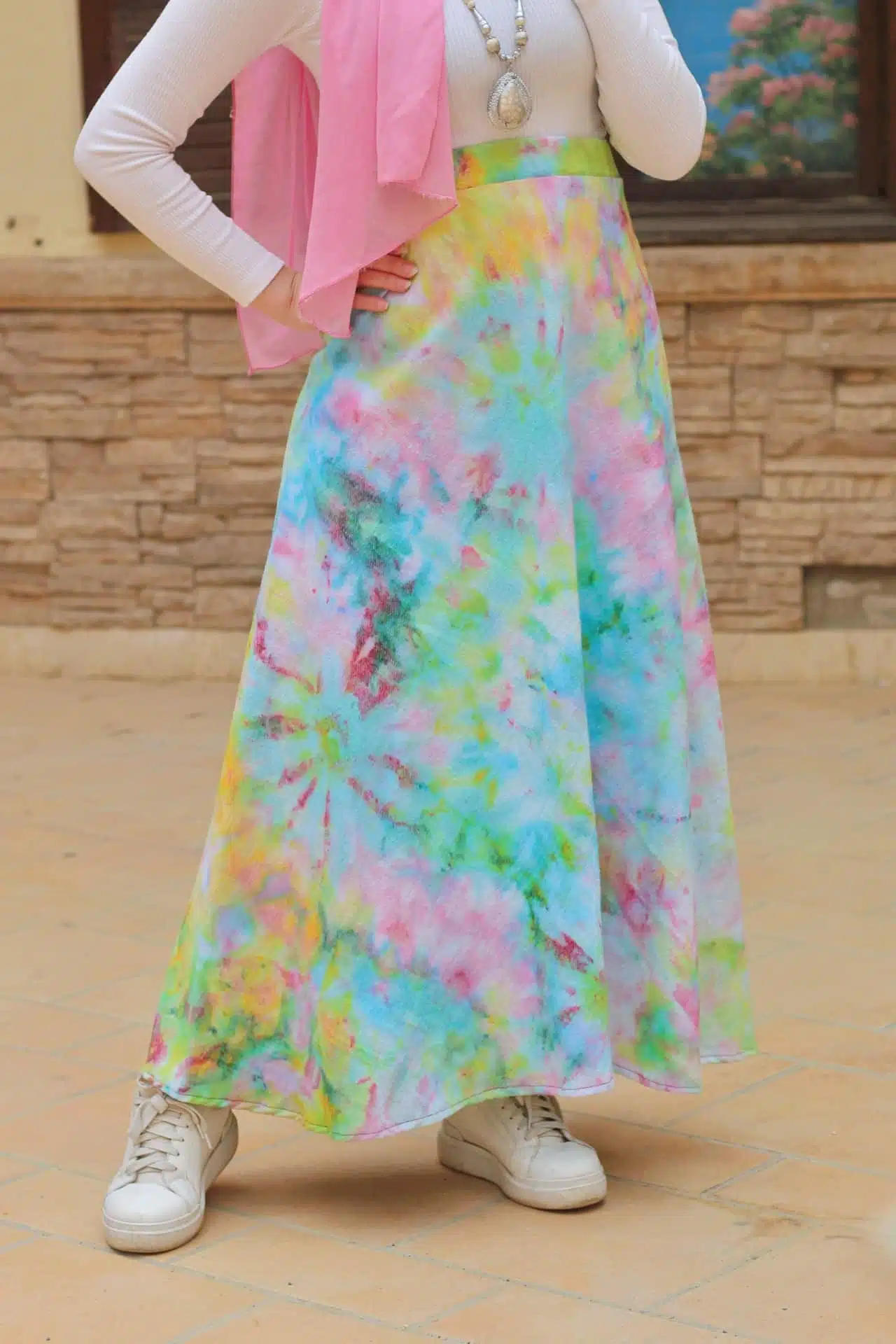 Unique Tie dye handmade skirt from white 100% cotton fabric size till 70kg.