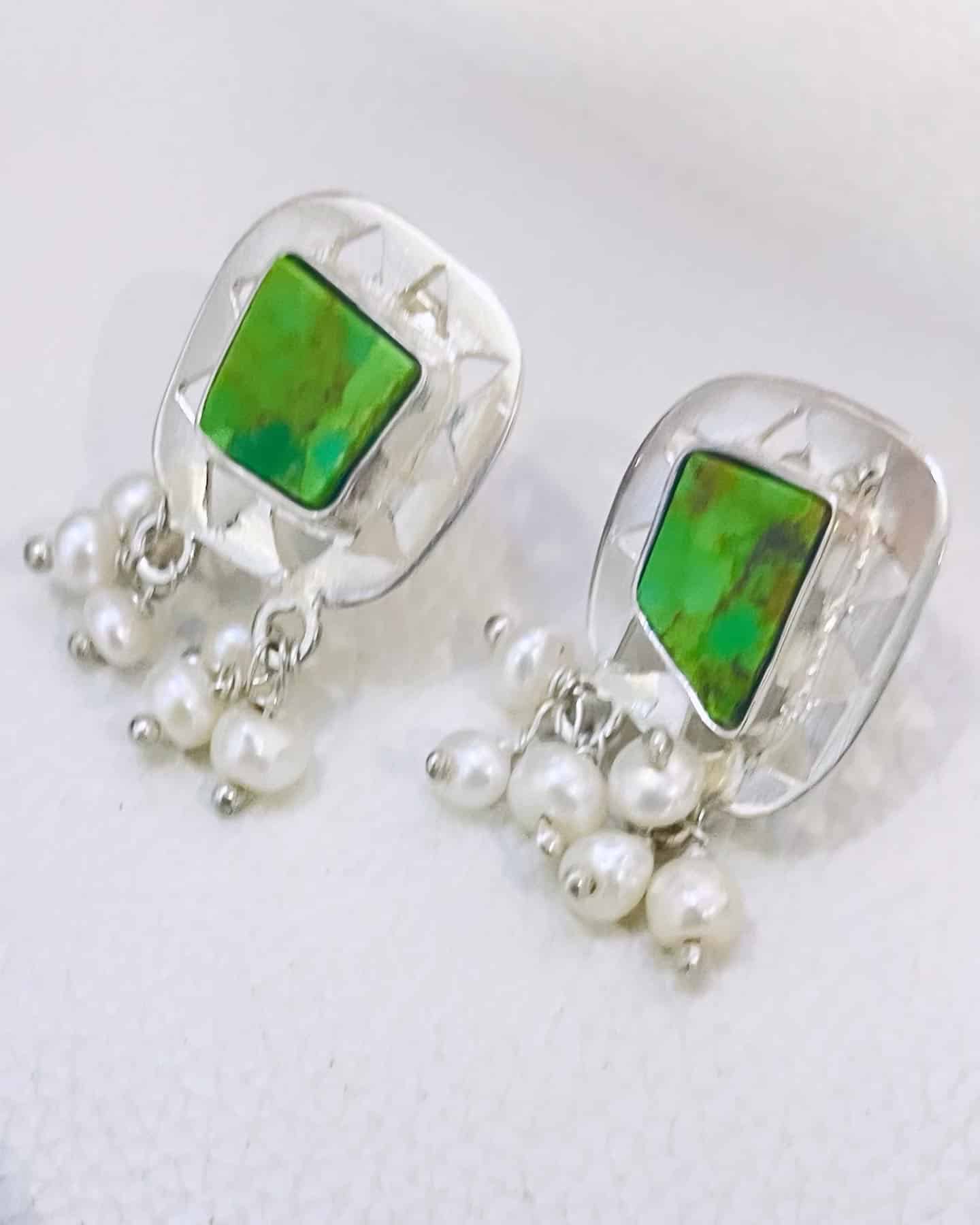 Sliver earring with pearl and Mexican turquoise stone earring
