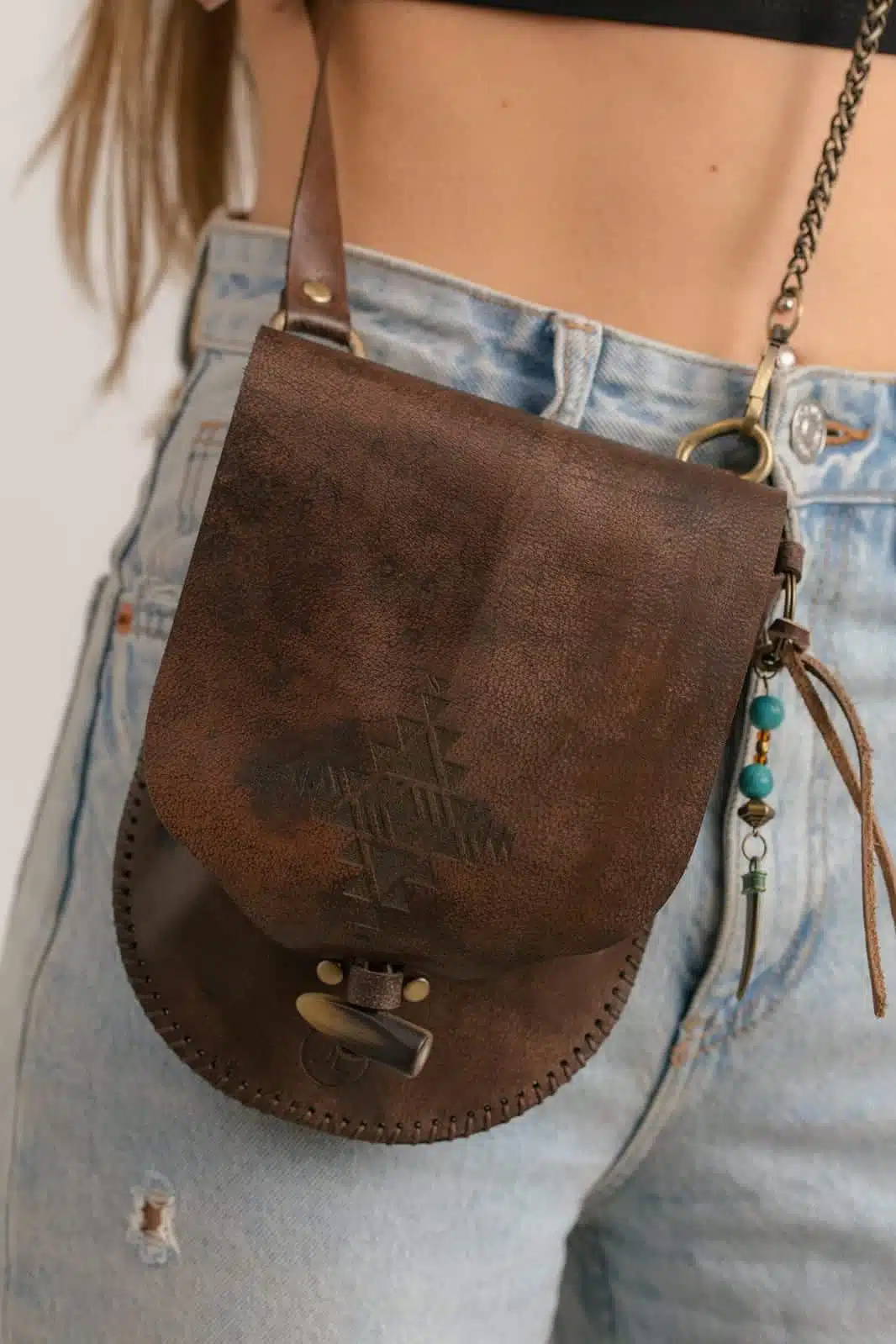 This practical distressed leather cross bag is handmade of high quality Pull Up leather. It is a very practical size which can hold all your necessities. It is also adorned with a gorgeous lase engraving of a tribal design and a wooden button closure which looks like a tribal amulet. Designed with vintage and minimal style, but modern details. It is made of Pull Up distressed leather. It will become your stylish companion for a long time.