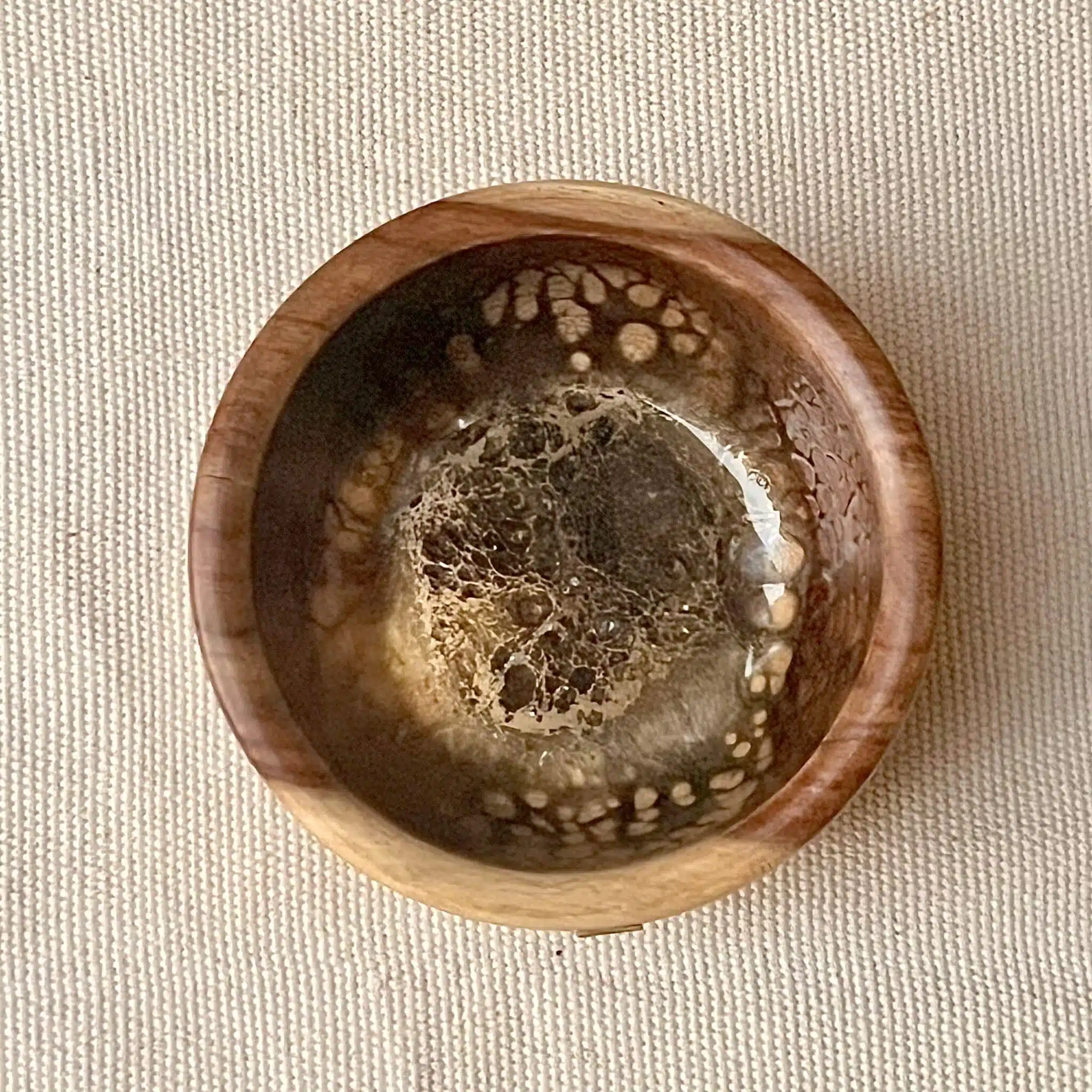 Handmade of epoxy resin on natural Asersus wood, treated with olive oil.