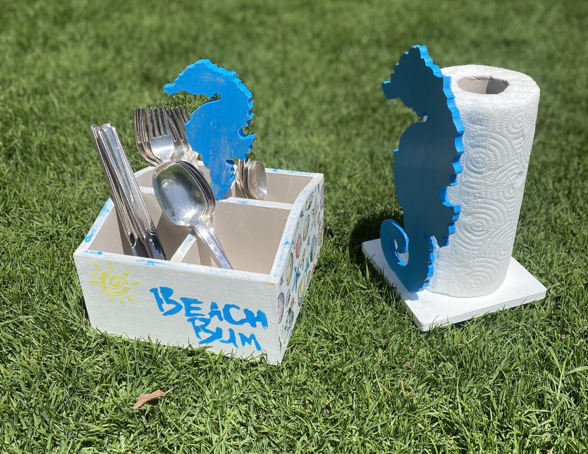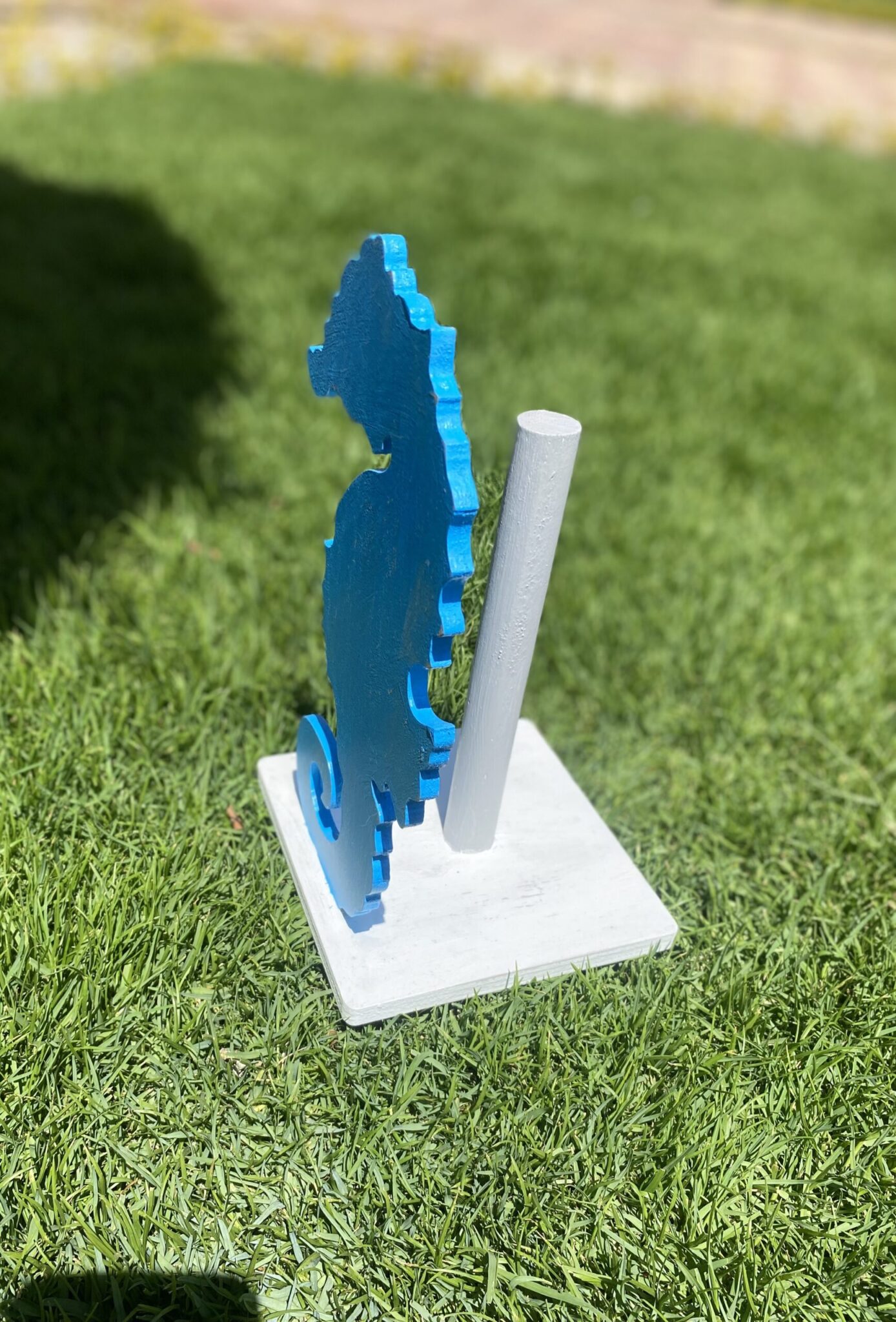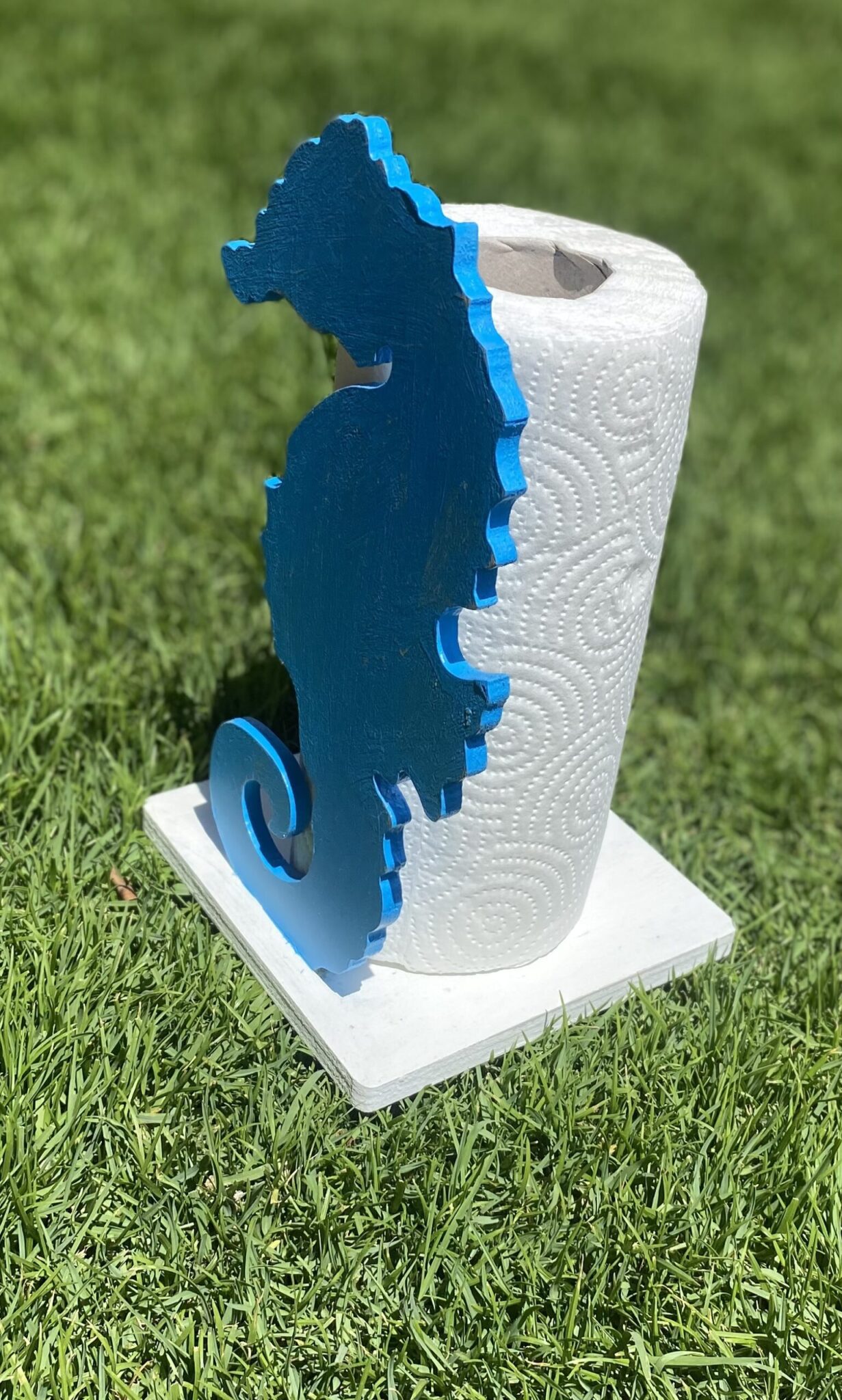 Small Sea Horse Kitchen Roll Holder in Turquoise color