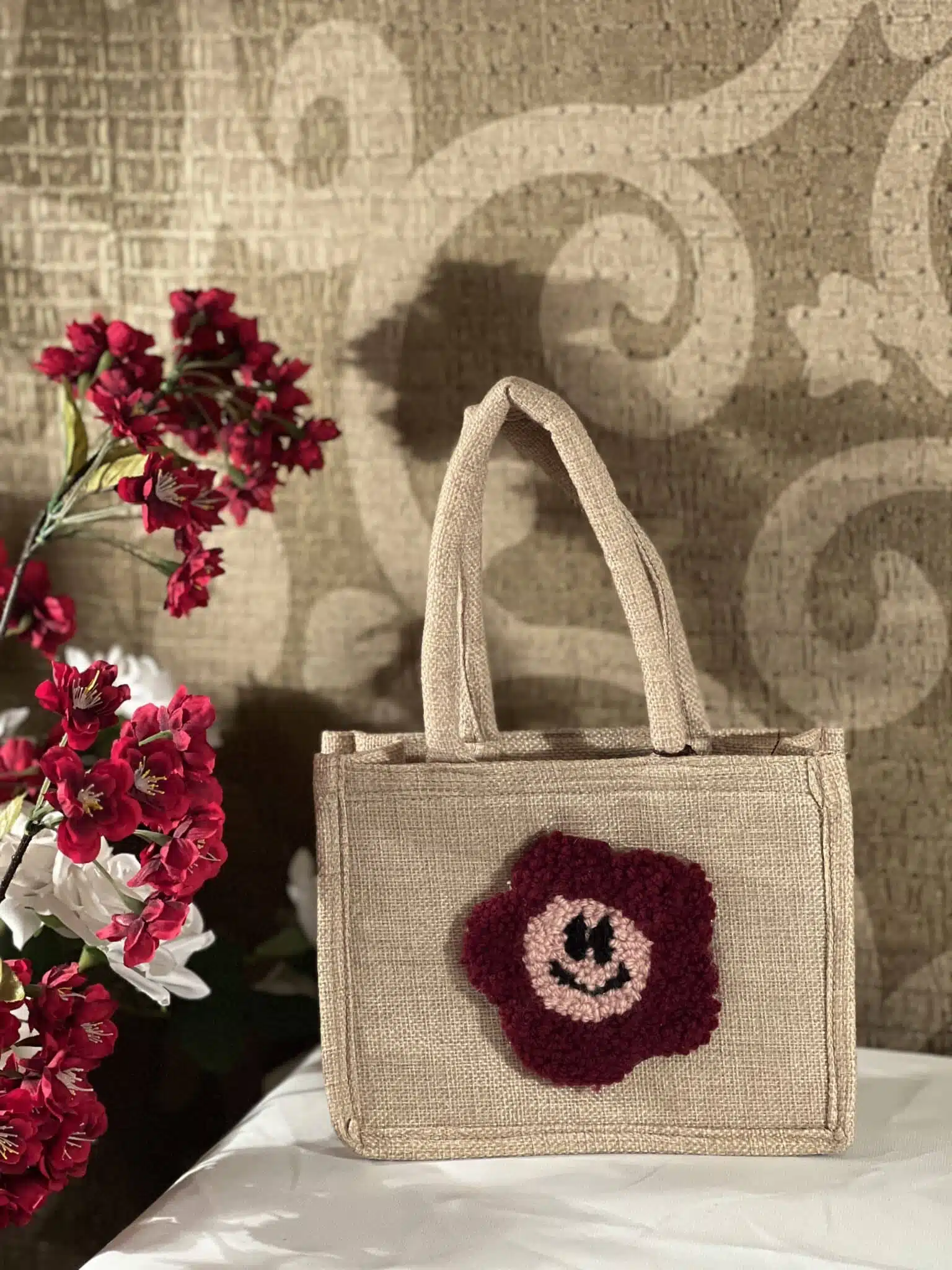 Be the first to review “Smiley flower mini jute bag”