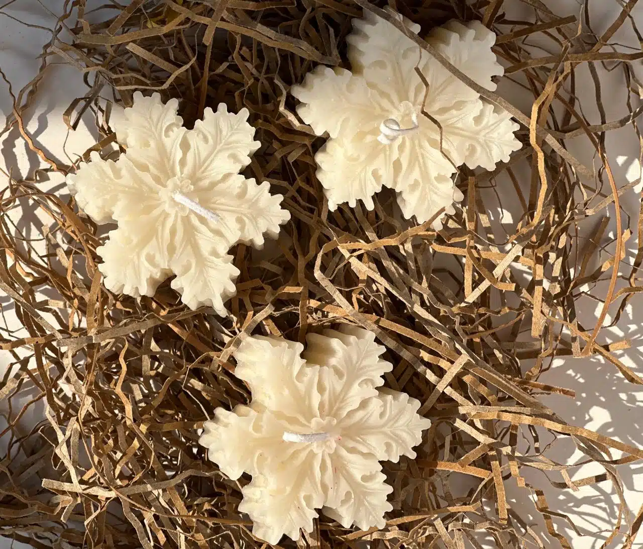 Set of 3 snow flakes scented candles.