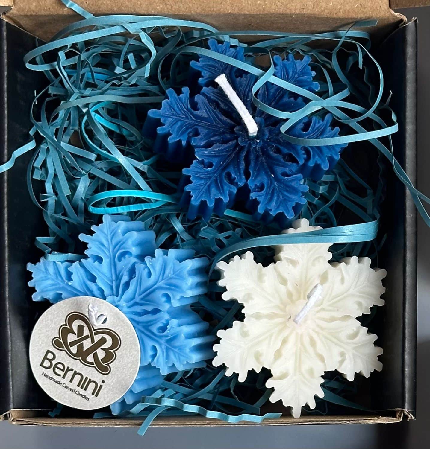 Set of 3 snow flakes scented candles.
