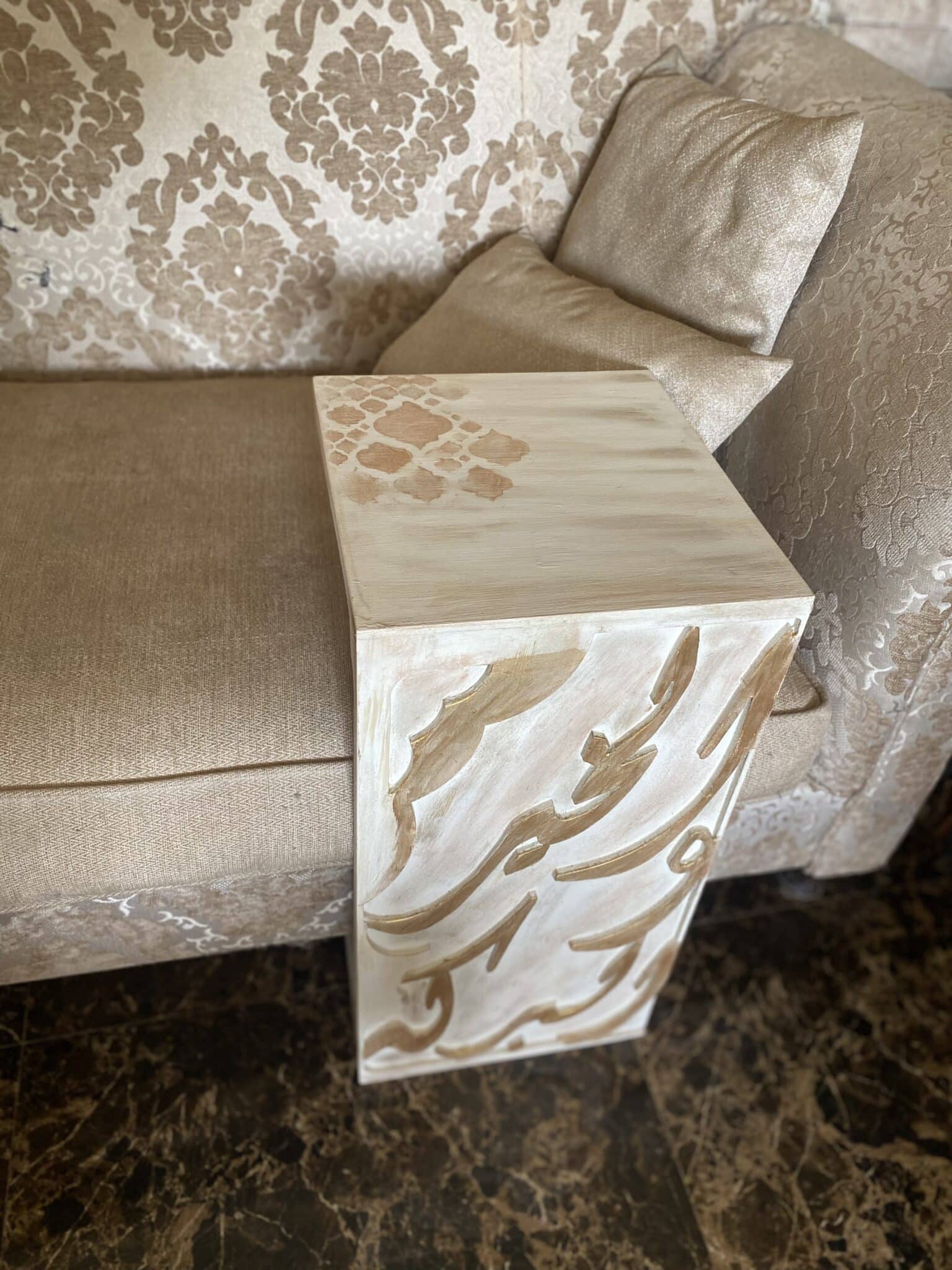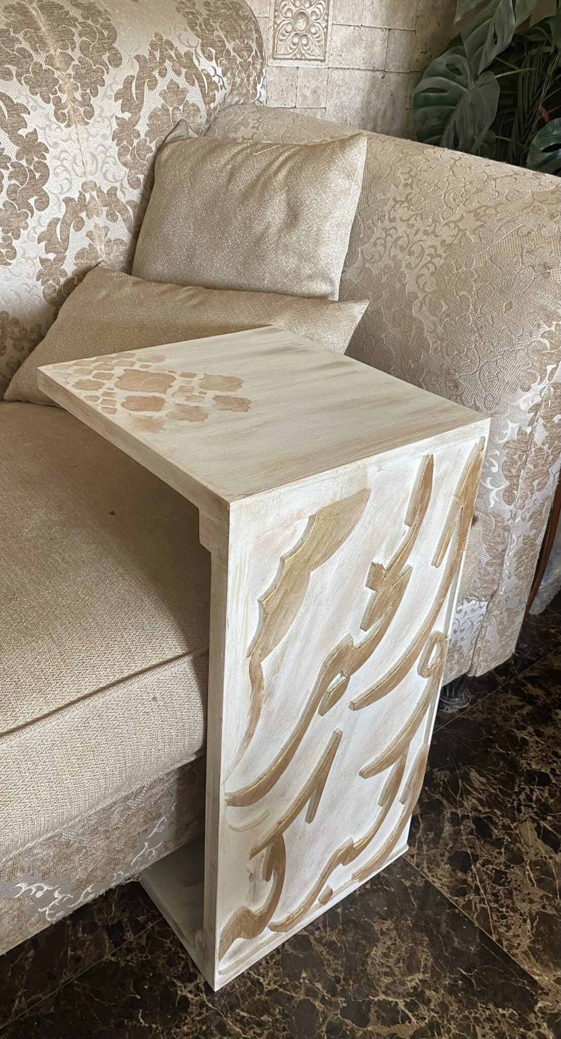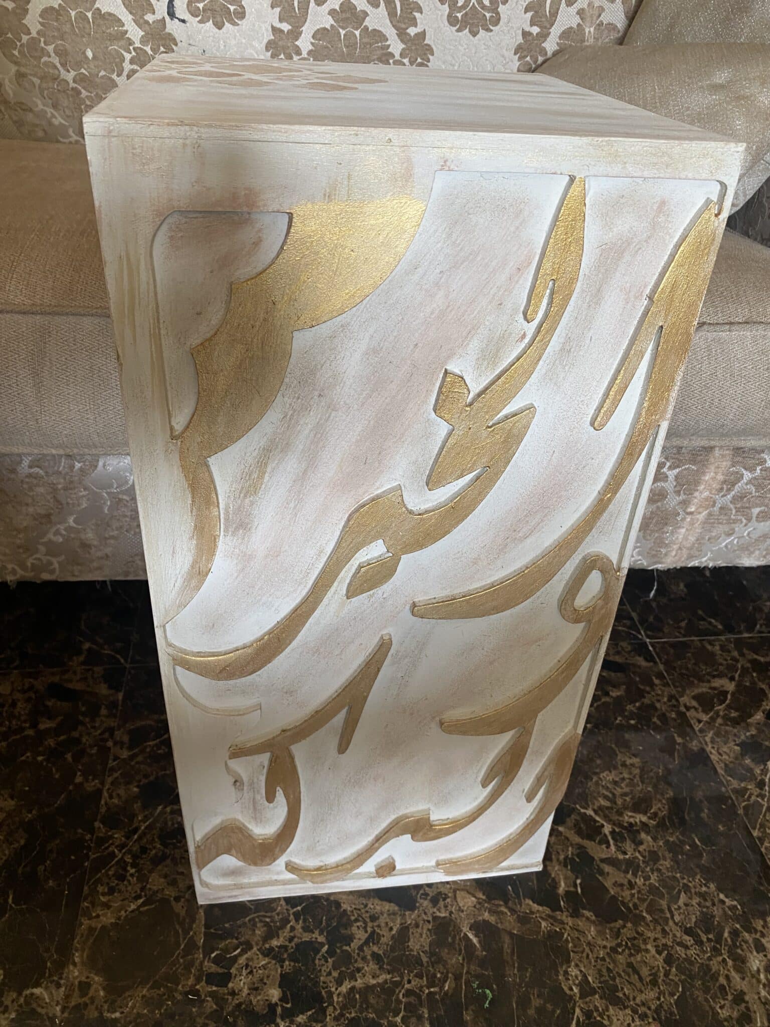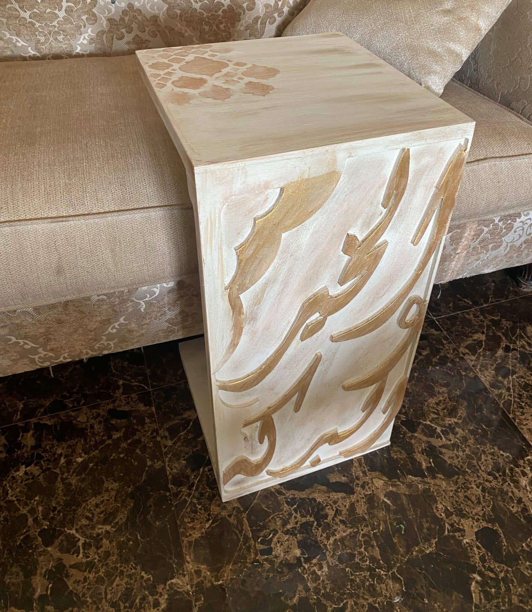 Wooden Sofa Side Table with Arabic Design & Calligraphy “الخير والبركة”