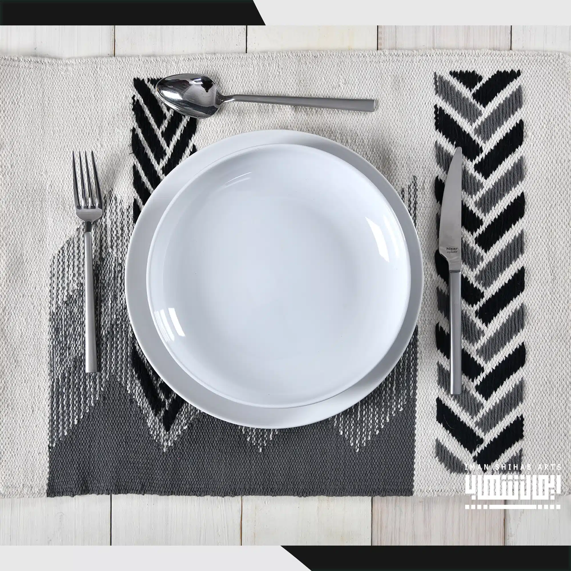 Handcrafted cotton kilim, flat-woven on cotton base with prominent effect of soumak weaving.