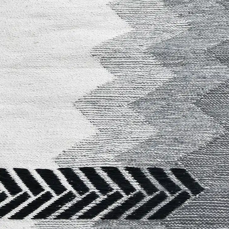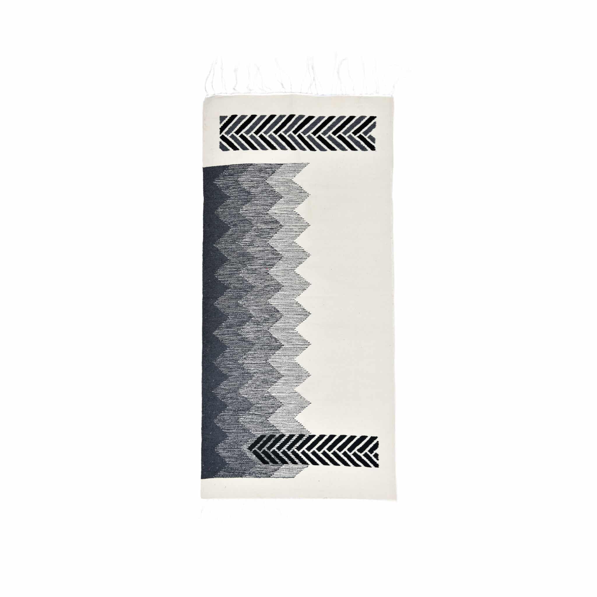 Handcrafted cotton kilim, flat-woven on cotton base with prominent effect of soumak weaving.