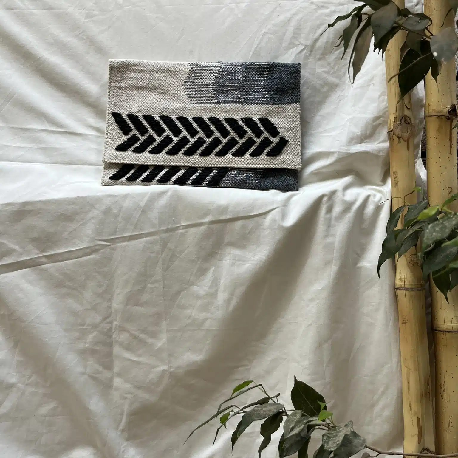 A clutch bag with a handcrafted cotton kilim exterior opens to a fabric-lined interior with an easy-to-access zipped pocket and 2 slip pockets, you’ll never have to dig for your phone or sunglasses.
