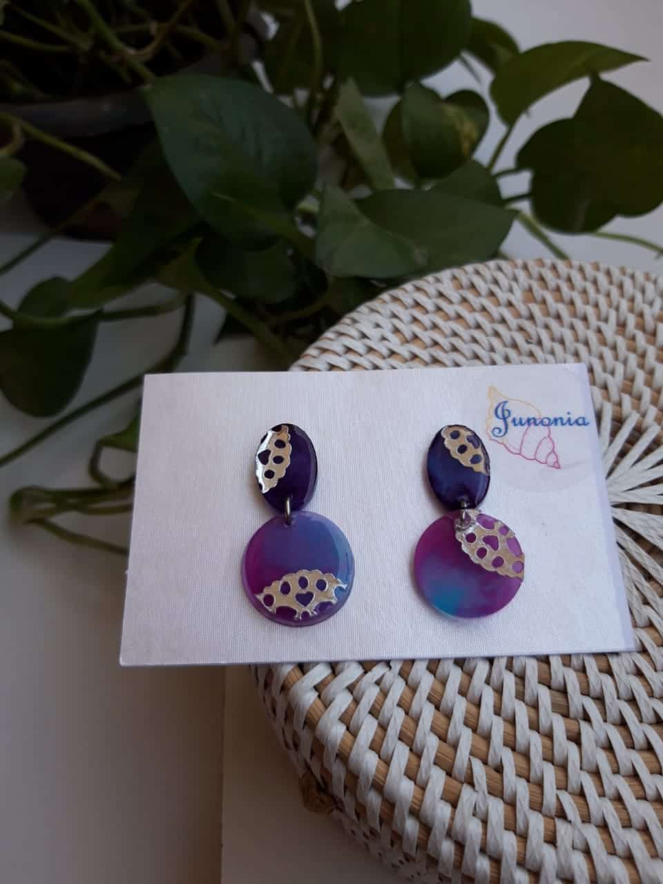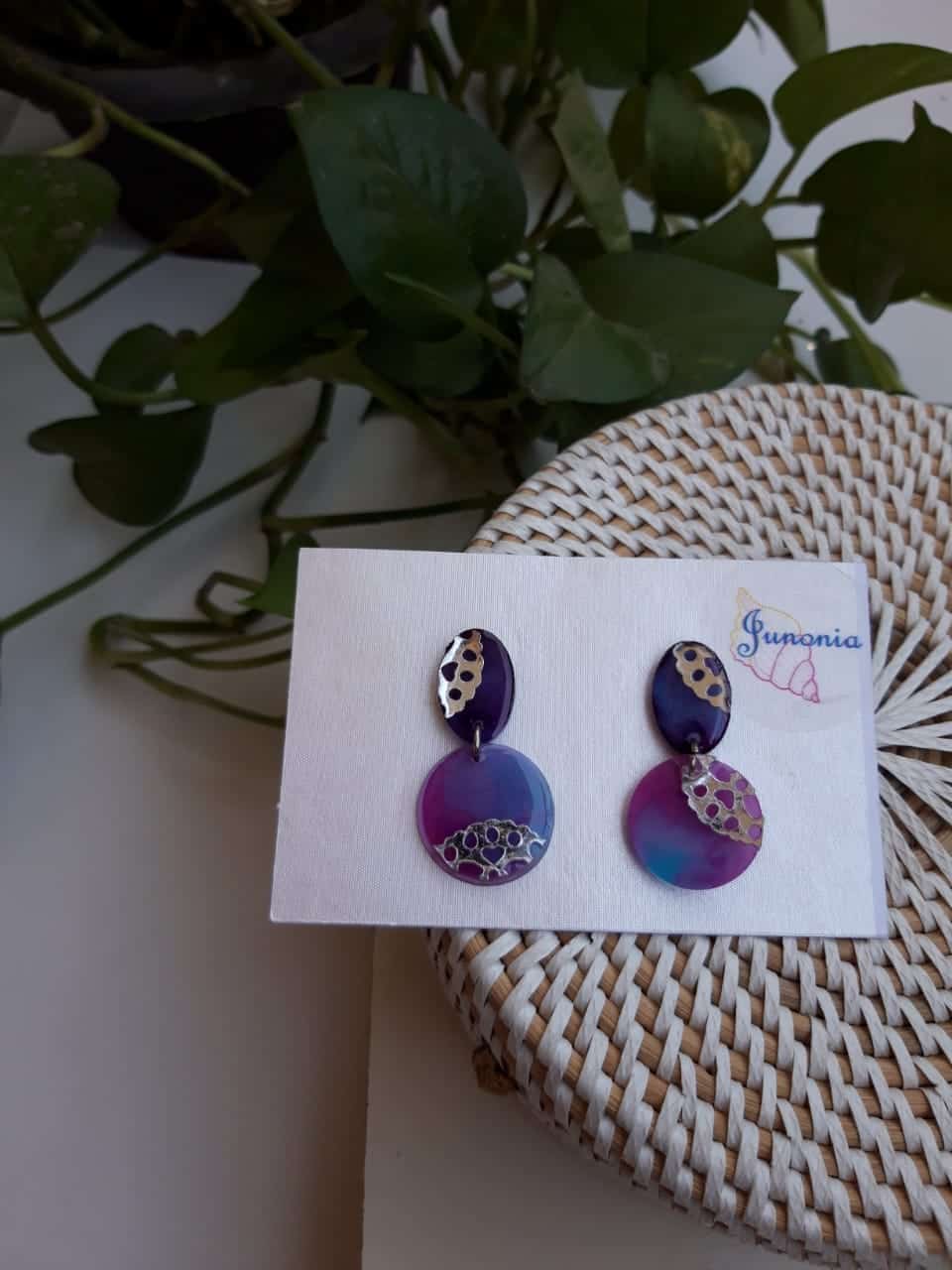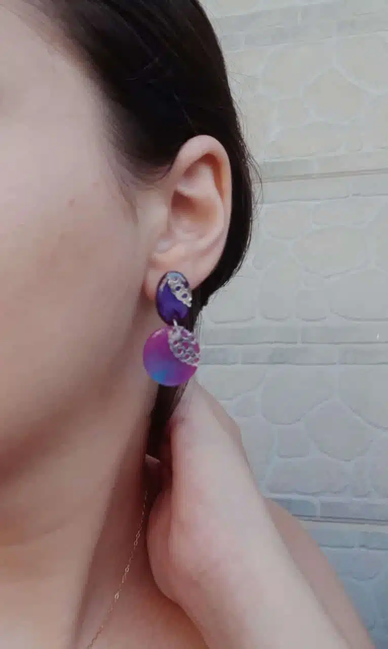 Layered blue and purple Earrings with a silver pattern