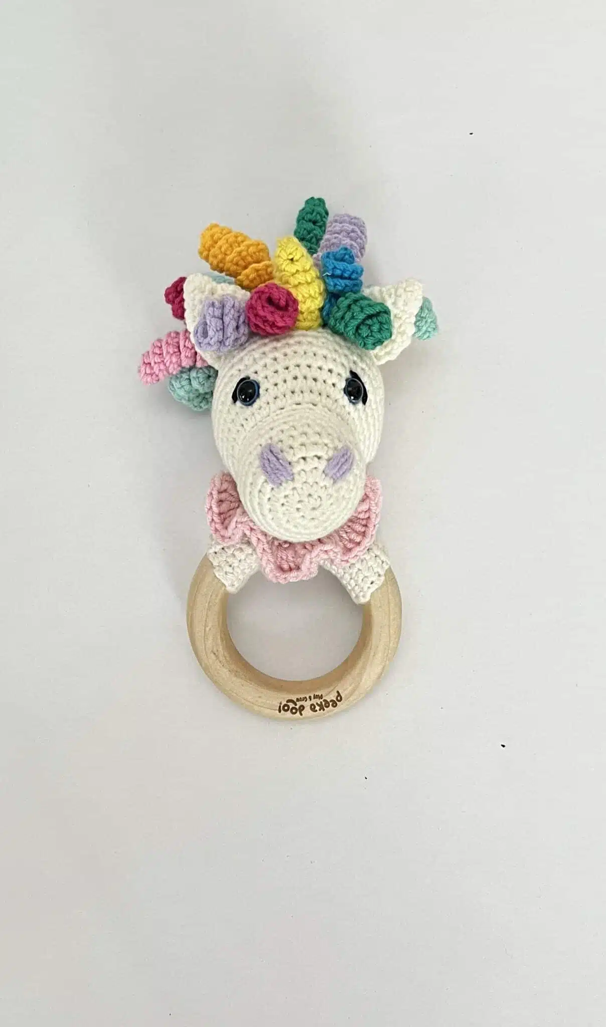 Introducing ‘Sparkle The Unicorn’ Rattle – a truly enchanting companion in the world of Peekadoo crochet creations. This magical unicorn isn’t just a toy; it’s a testament to the artistry of handcrafted wonders, designed to bring joy and wonder to your baby’s playtime.