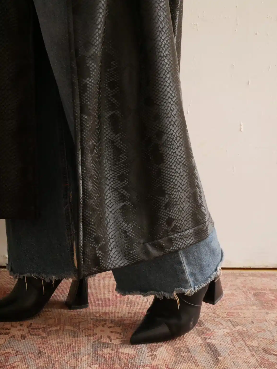 This product is crafted from a premium suede fabric, offering an exceptionally soft and smooth texture that provides a luxurious feel against the skin. The snakeskin print adds an elegant, exotic touch, enhancing the overall aesthetic without compromising warmth. The high-quality material is not only visually striking but also lightweight and breathable, ensuring a relaxed, comfortable experience. Its sophisticated design, paired with the rich softness of the suede, makes it a perfect choice for those who appreciate both style and comfort.