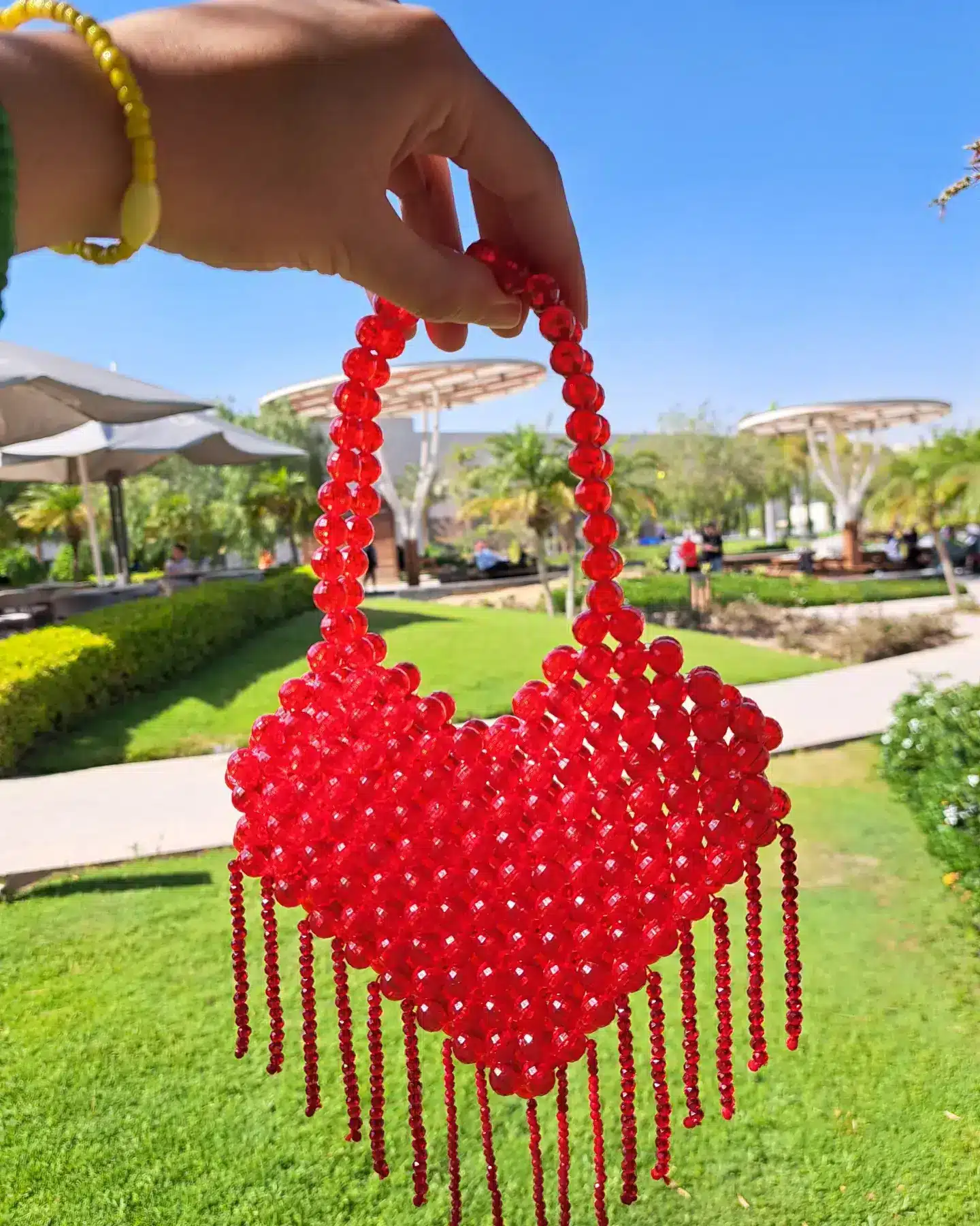 - Red crystal bag with an extension of small red crystal stones.