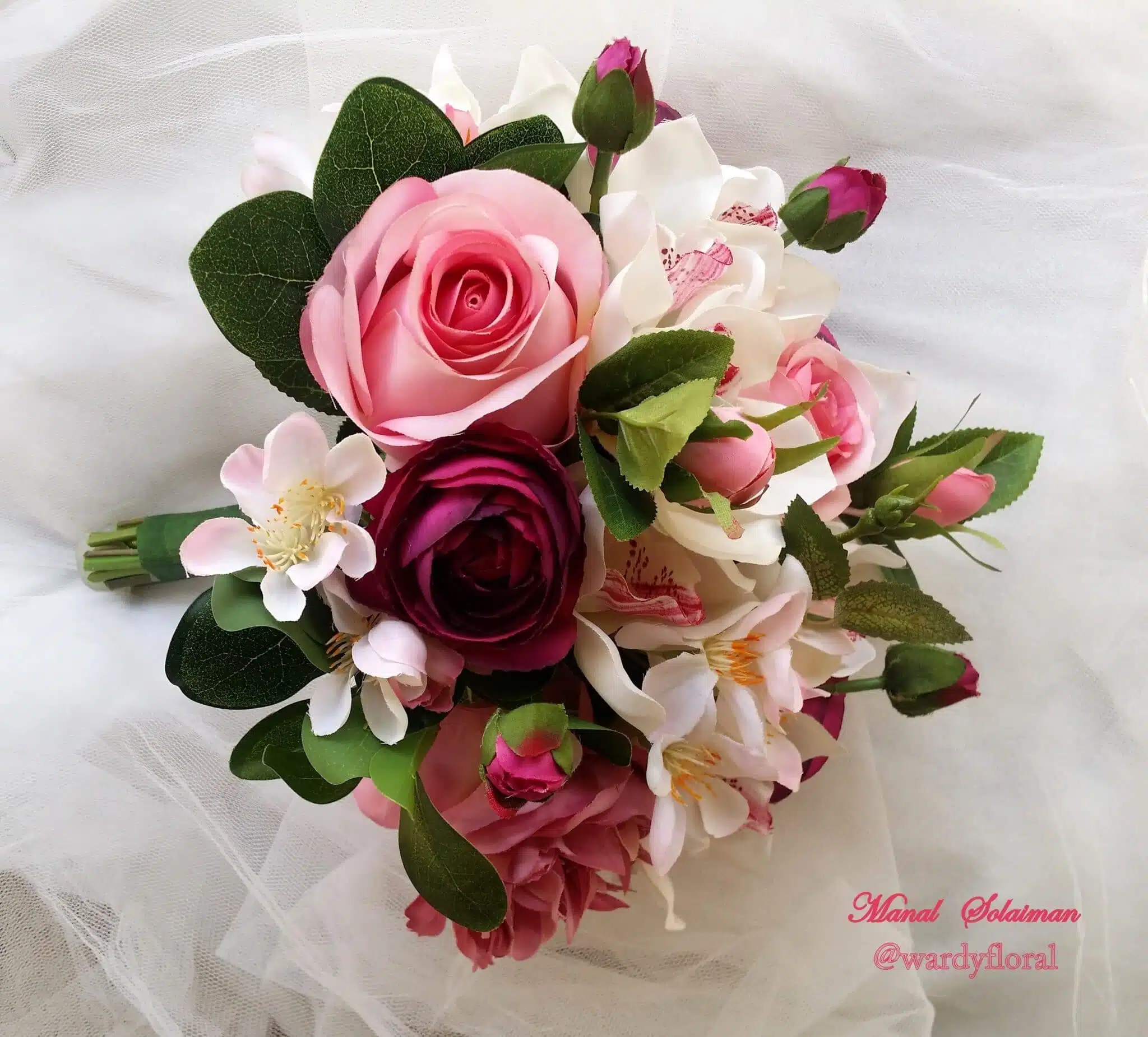 #Pink #roses together with #ranunculus,#orchids&#cherry #blossoms.