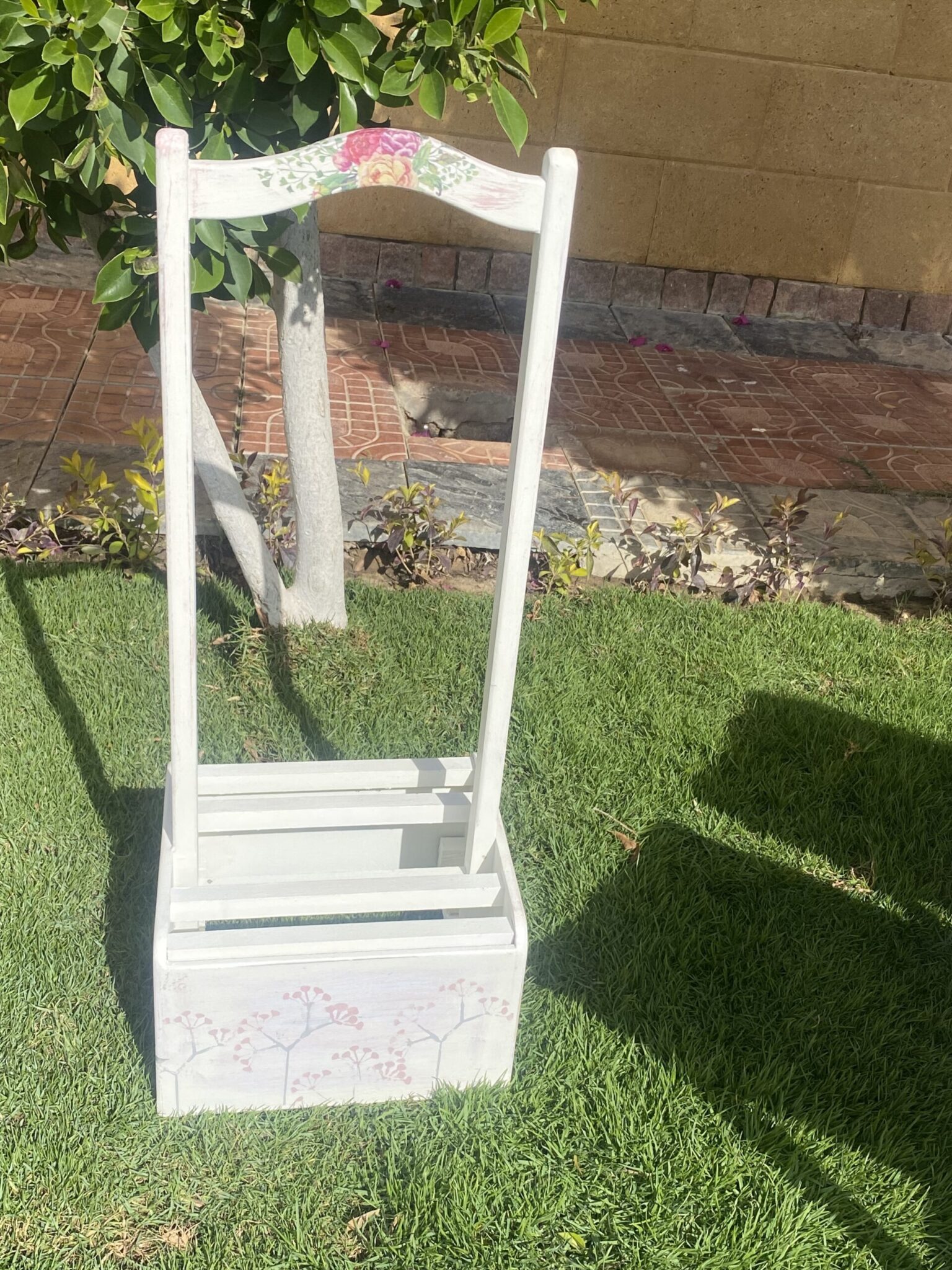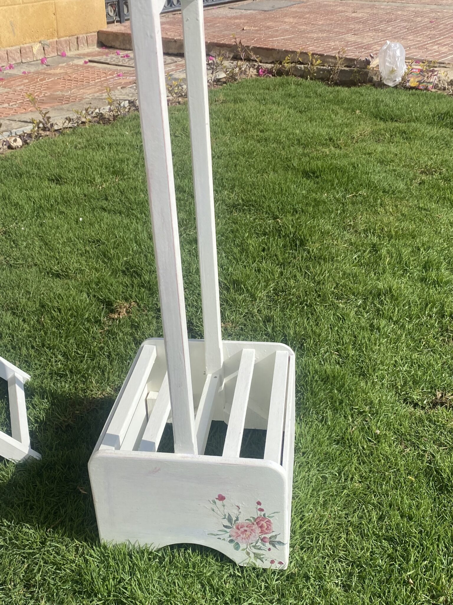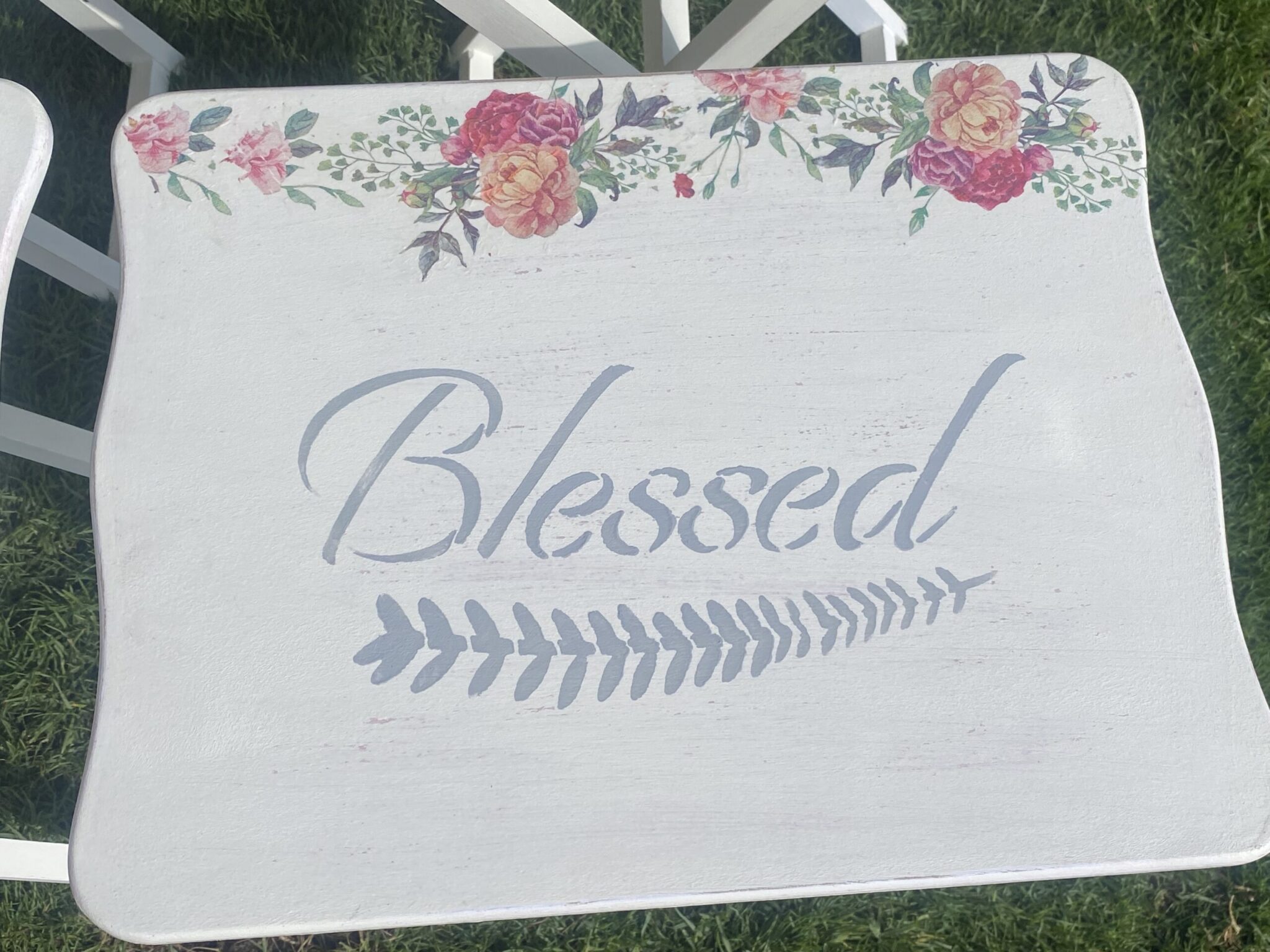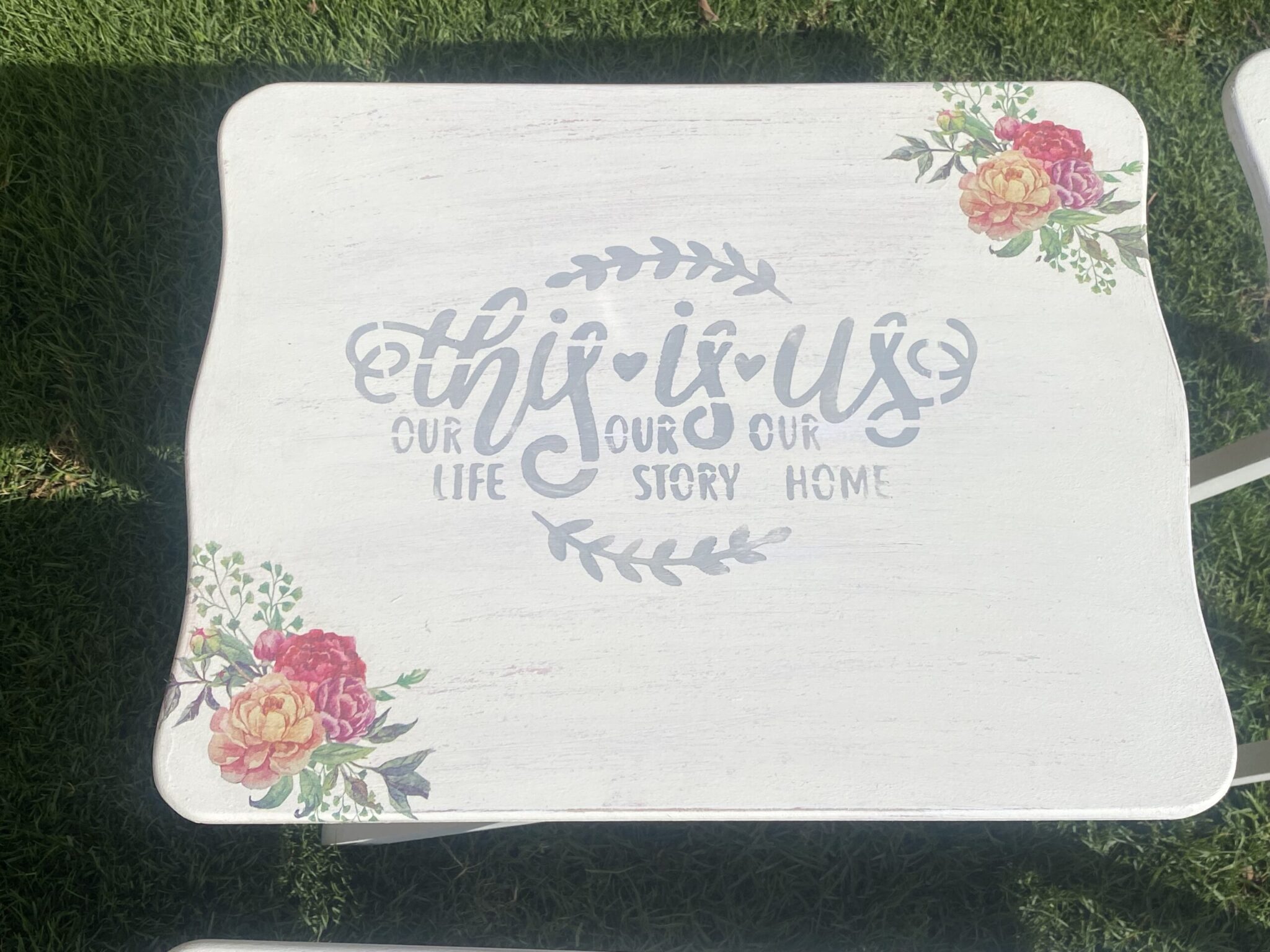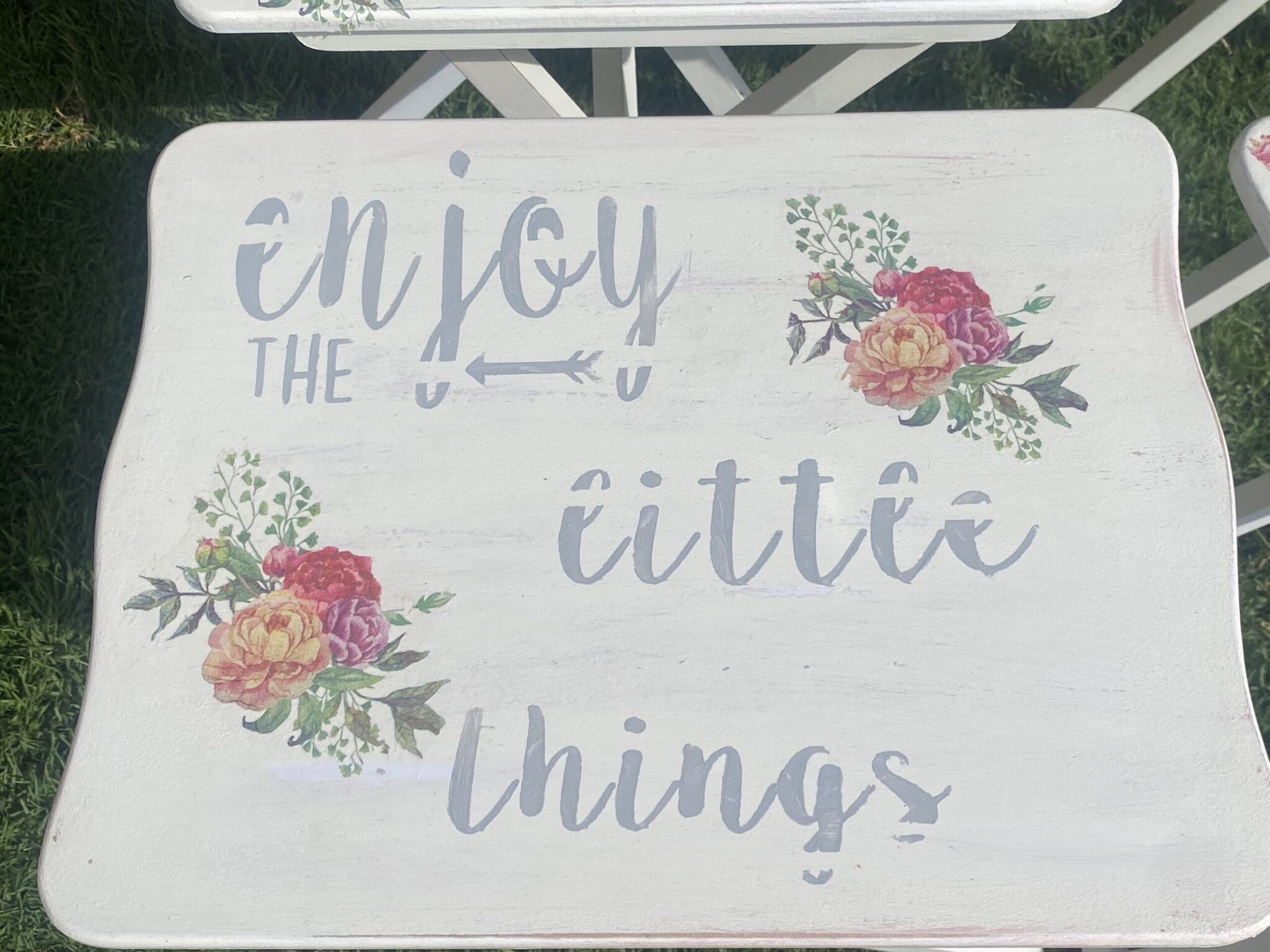 Wooden set of 4 foldable tables with spring flowers design and family quotes